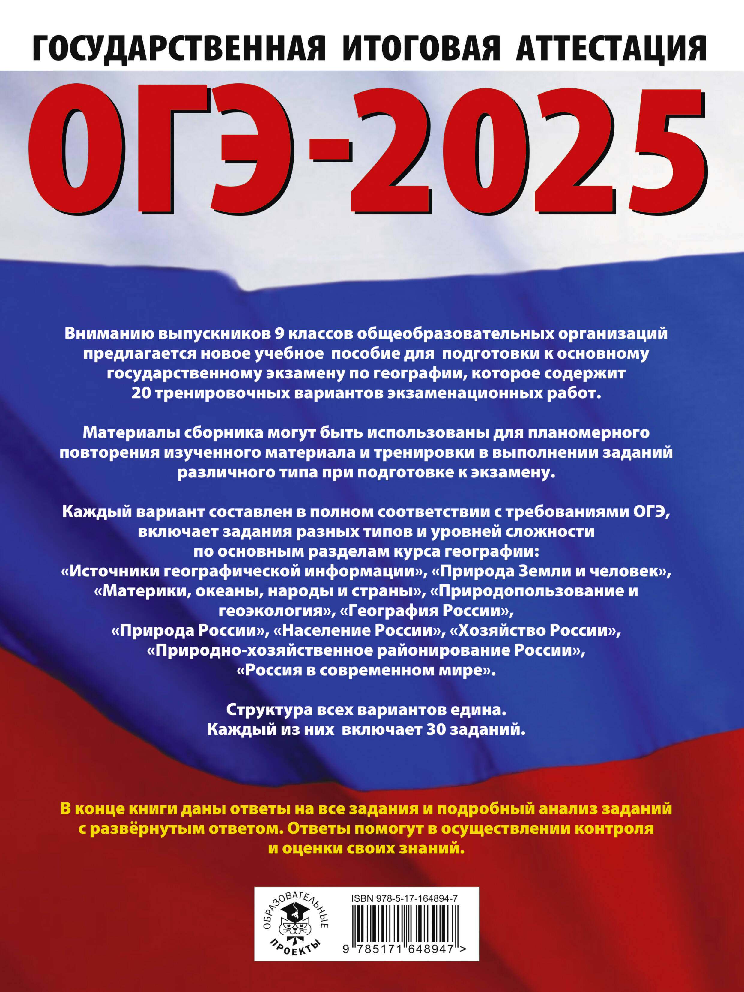 Аннотация: ОГЭ-2025. География. 20 тренировочных вариантов экзаменационных работ для подготовки к основному государственному экзамену