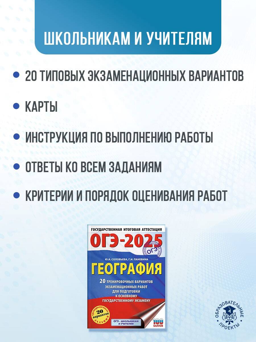 ОГЭ-2025. География. 20 тренировочных вариантов экзаменационных работ для подготовки к основному государственному экзамену