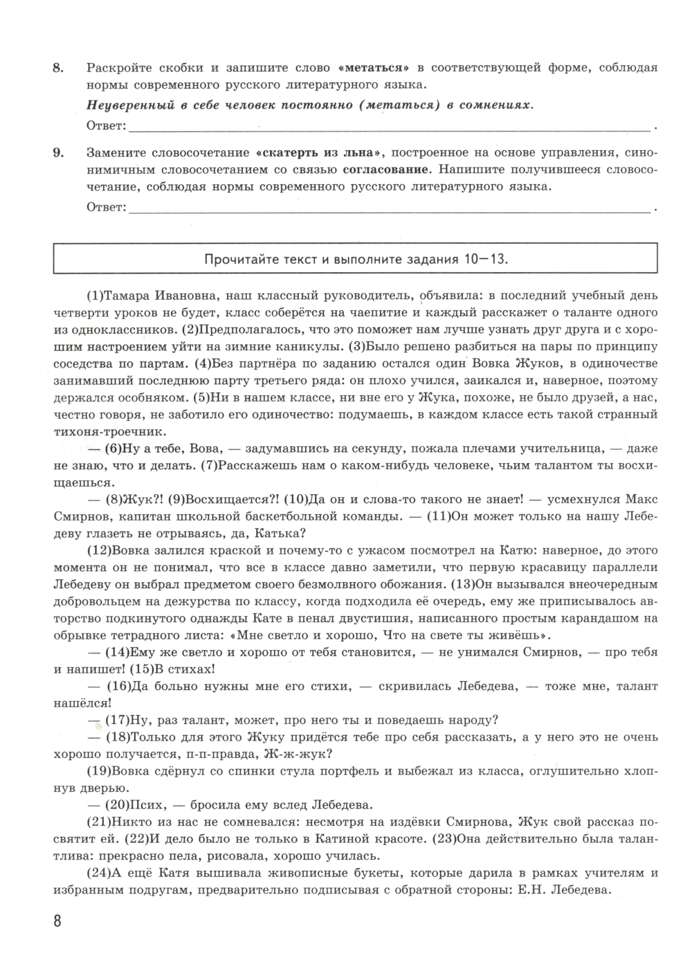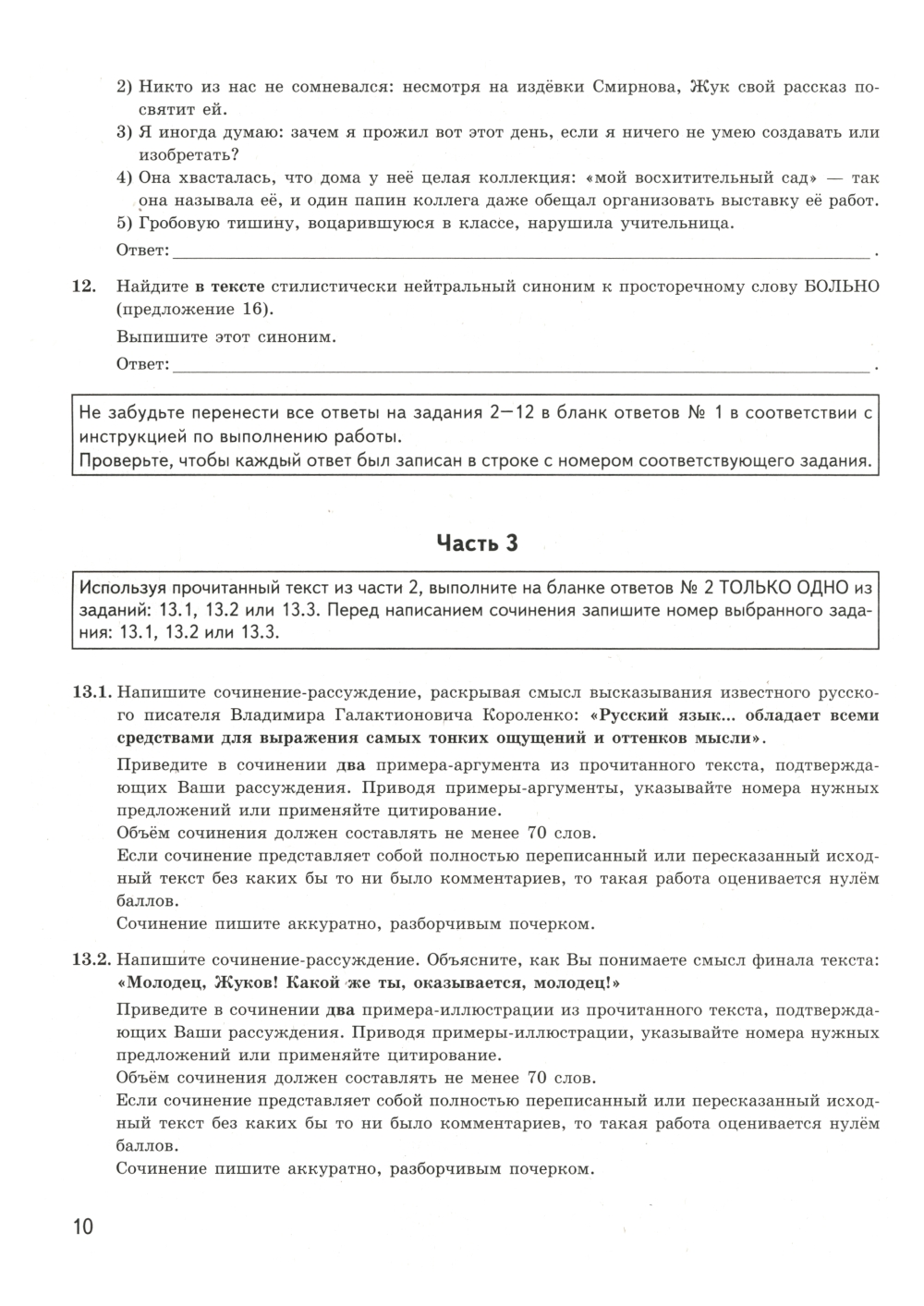 Предлагаемое пособие состоит из двух частей: 10 типовых вариантов экзаменационной работы Основного государственного экзамена и 10 типовых вариантов КИМ для проведения итогового собеседования. Назначение пособия - дать читателям представление о структуре и содержании КИМ по русскому языку, степени трудности заданий, оценить уровень подготовки к экзамену. В сборнике даны ответы ко всем вариантам тестов. Пособие адресовано девятиклассникам для самоподготовки и самоконтроля, а также учителям для подготовки учащихся к экзамену по русскому языку.| Издательство | Экзамен |