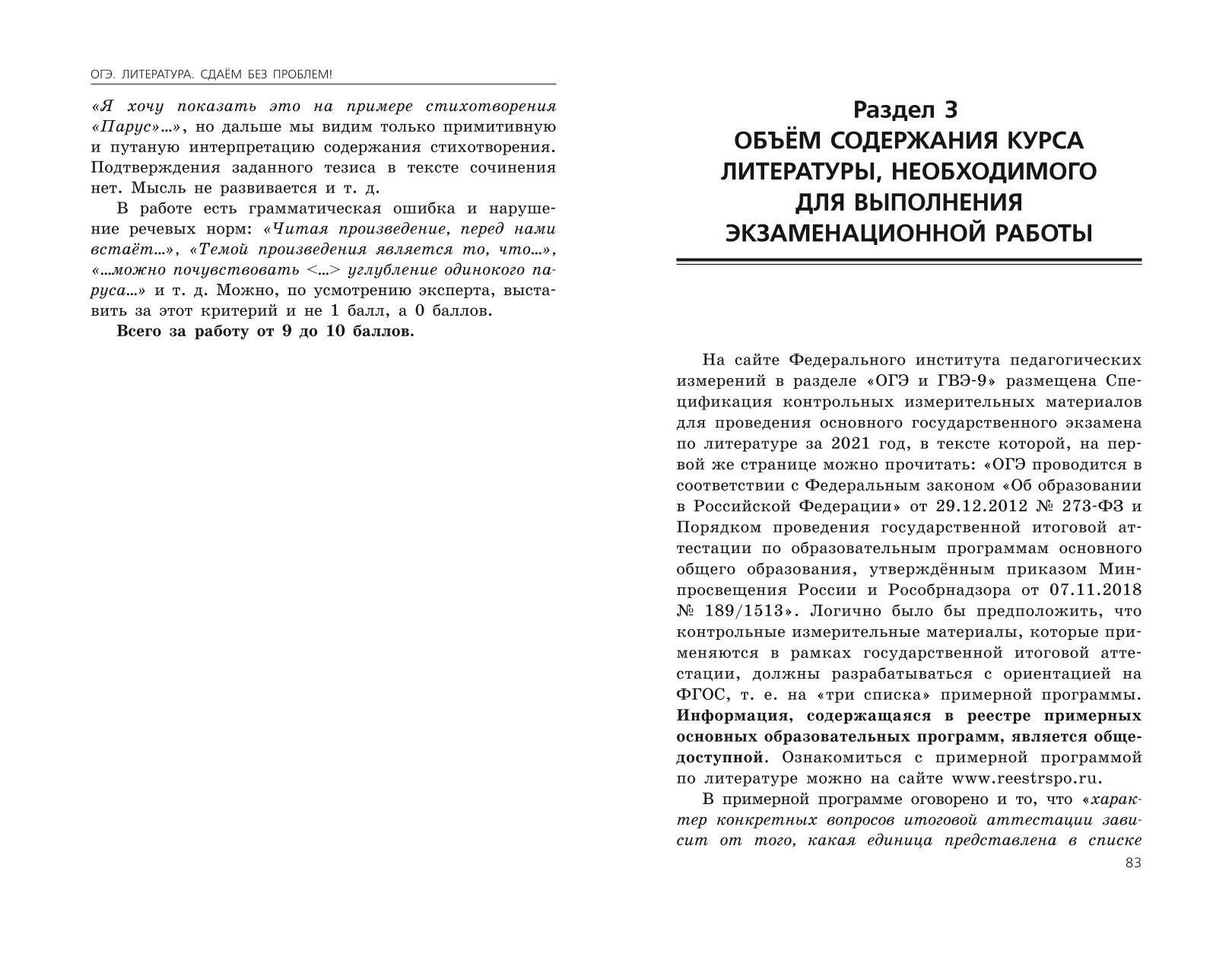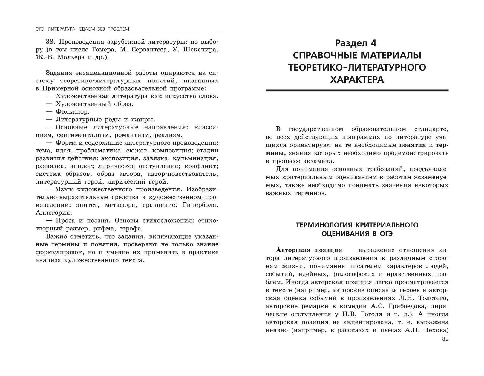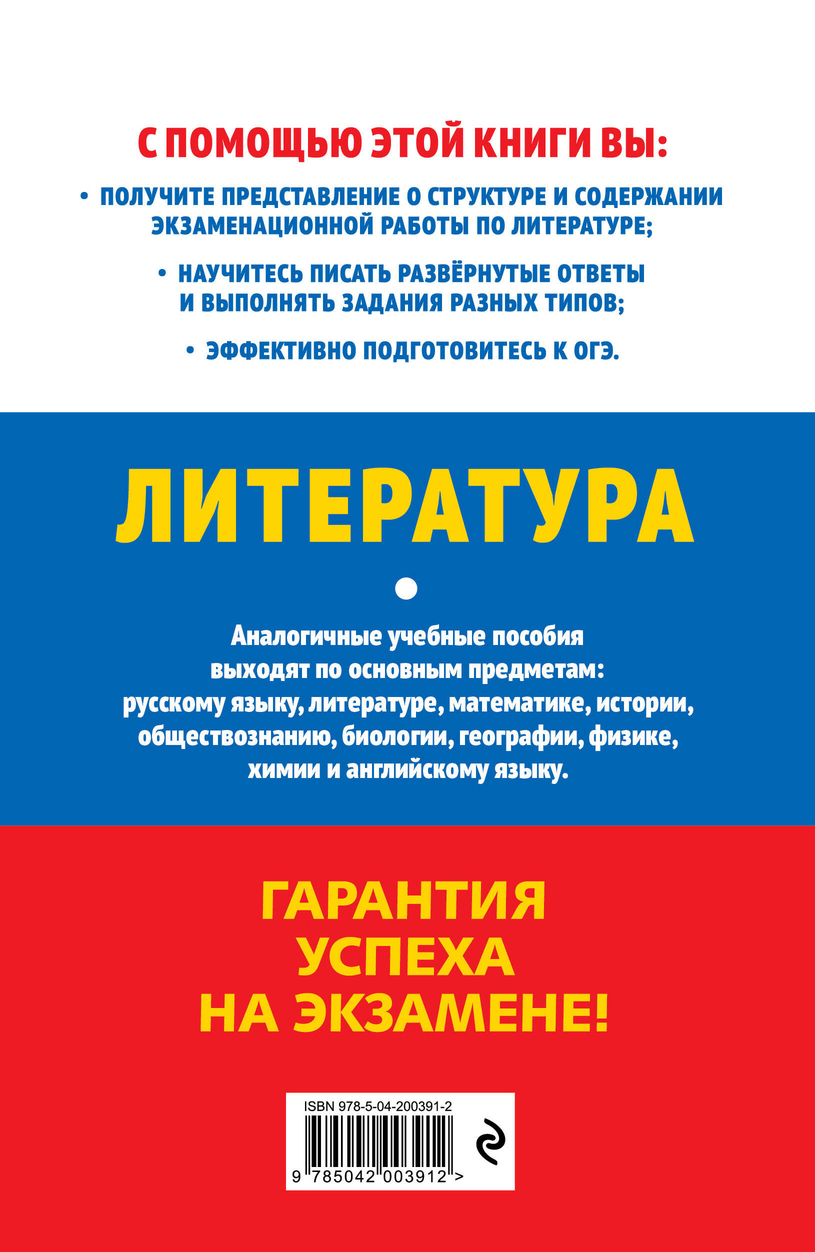 Материалы пособия дадут представление о типах заданий и содержании экзаменационной работы и помогут школьникам оценить уровень готовности к ОГЭ по литературе. В пособии представлены все необходимые материалы для подготовки учащихся 9-х классов к ОГЭ по литературе: описание структуры экзаменационной работы, алгоритмы выполнения заданий всех типов, примеры работ с комментариями к их оцениванию, а также 10 тренировочных вариантов, составленных в соответствии с демо-версией. Кроме того, издание содержит справочные материалы теоретико-литературного характера. Книга адресована учащимся, учителям и репетиторам.| Издательство | ООО "Издательство "Эксмо" |