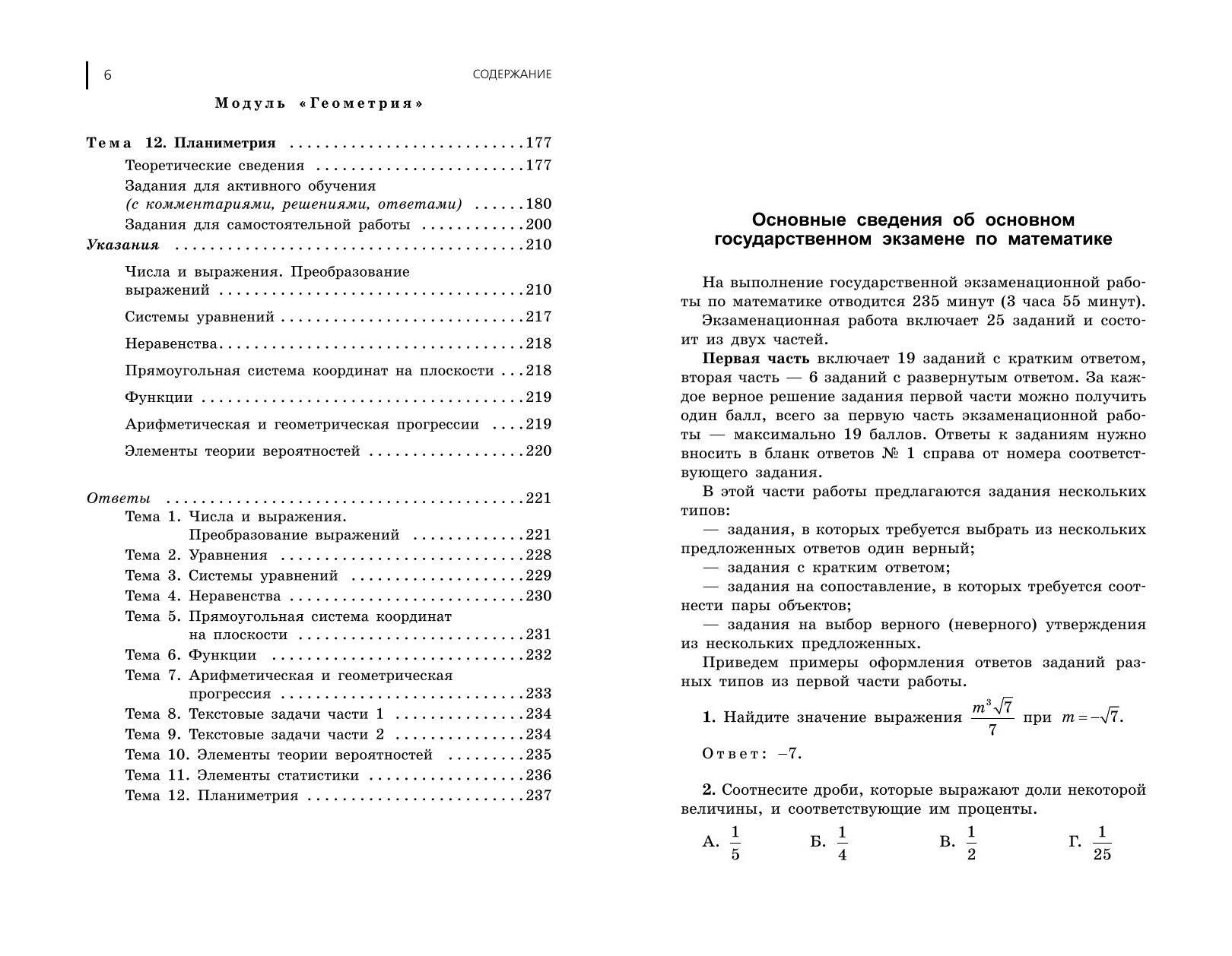 Пособие предназначено для подготовки учащихся 9-х классов к ОГЭ по математике в 2025 году. В сборник включены более 750 заданий разных типов, сгруппированных по темам, справочный теоретический материал, ответы ко всем заданиям, подробные решения задач. Представлены все учебные темы, знание которых проверяется экзаменом. Издание окажет помощь учителям при организации тематических проверок для текущего закрепления материала, а также при подготовке учащихся к ОГЭ. Авторы пособия - В.В. Кочагин, кандидат педагогических наук, учитель математики, Почётный работник общего образования Российской Федерации, и М.Н. Кочагина, кандидат педагогических наук, доцент Департамента математики и физики ИЦО ГАОУ ВО МГПУ. Материалы пособия будут способствовать формированию у учащихся стойких навыков выполнения заданий разных типов и уровней сложности по всем темам, проверяемым на экзамене.| Издательство | ООО "Издательство "Эксмо" |