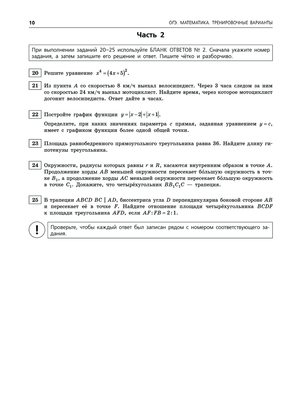 Аннотация: ОГЭ-2025. Математика. Тренировочные варианты. 10 вариантов с решениями