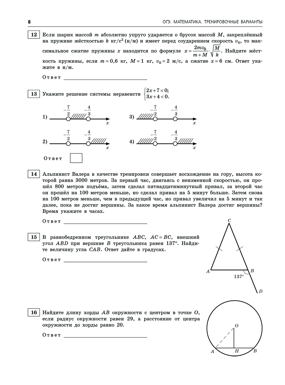 Книга предназначена для подготовки учащихся к ОГЭ по математике. Публикуемые в пособии материалы дадут представление о типах заданий и содержании экзаменационной работы. Издание содержит: • 10 тренировочных вариантов, составленных в соответствии с демоверсией; • подробные решения всех заданий; • критерии оценивания. Пособие будет полезно учителям математики, так как даёт возможность эффективно организовать учебный процесс и подготовку к экзамену.