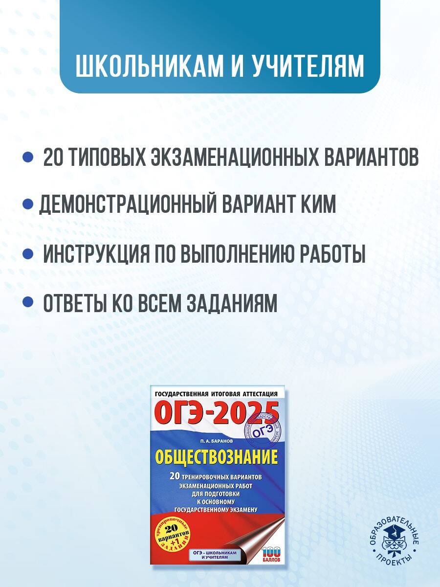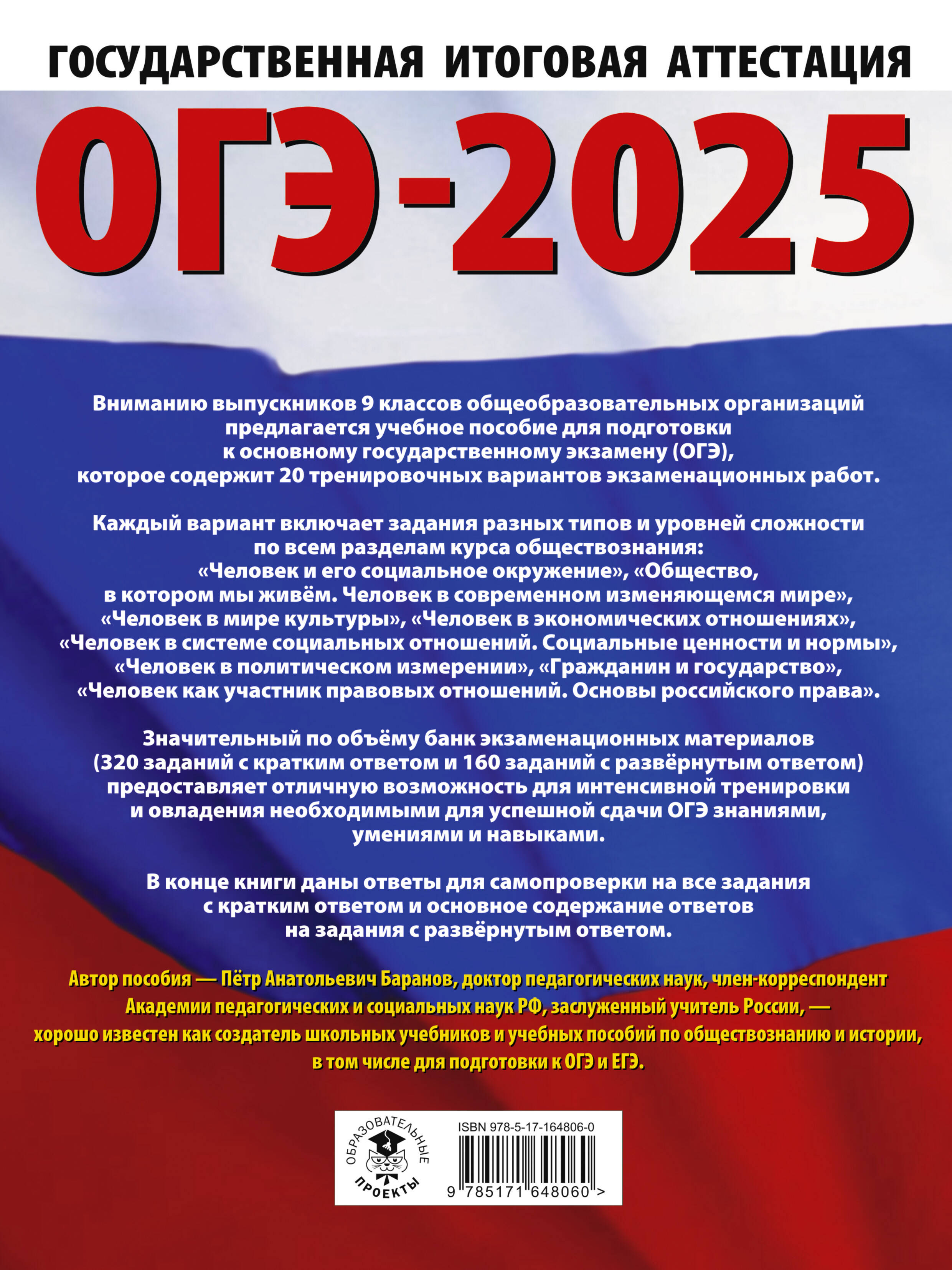 ОГЭ-2025. Обществознание. 20 тренировочных вариантов экзаменационных работ для подготовки к ОГЭ