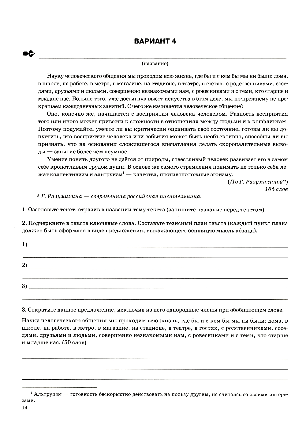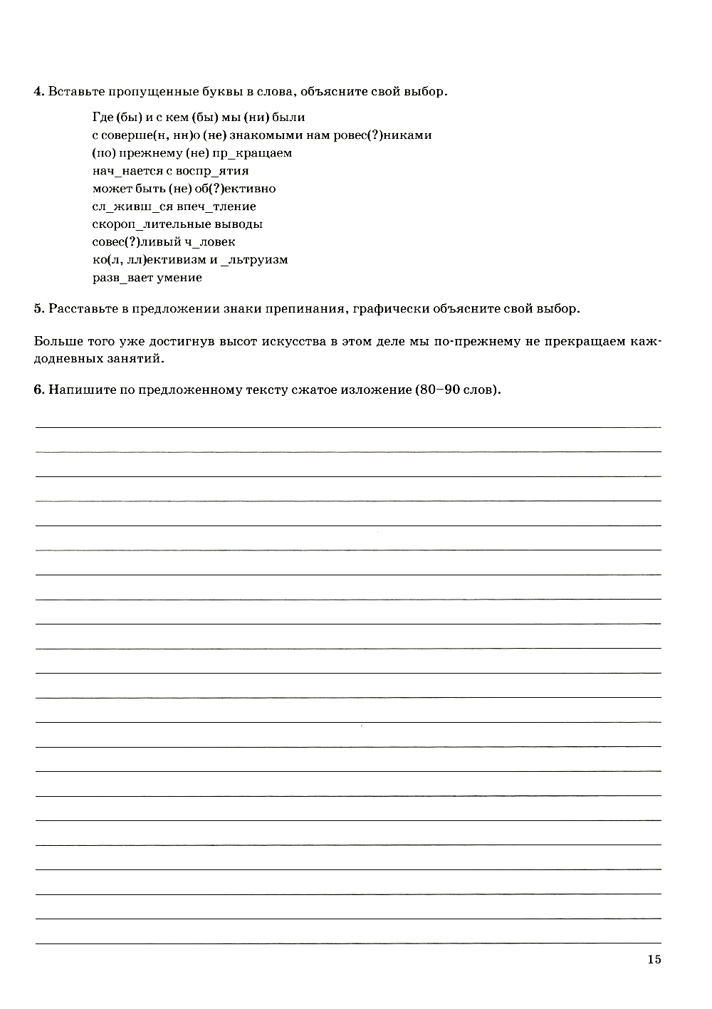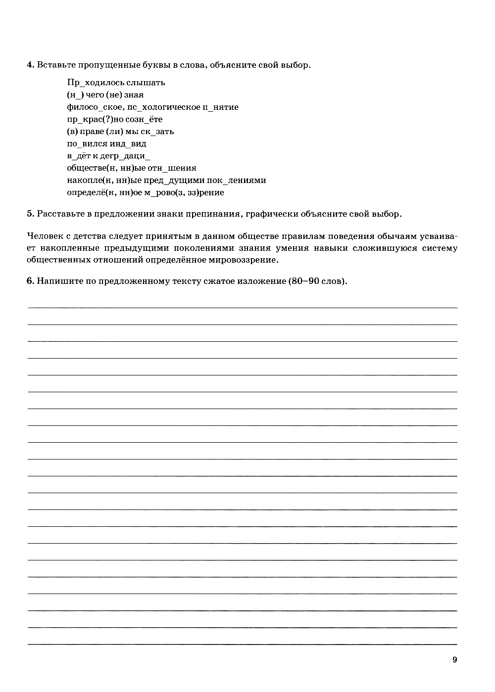 Предлагаемое пособие предназначено для подготовки к Основному государственному экзамену. Оно состоит из трёх частей: первая посвящена такому трудному заданию, как написание сжатого изложения; во второй части дан теоретический материал и комплекс заданий, аналогичных экзамена-ционным заданиям. Третья часть отведена комплексному повторению и представляет собой систему универсальных заданий, направленных на повторение основных тем курса русского языка. Издание рассчитано на учащихся 9-х классов, учителей, методистов, репетиторов.| Издательство | Экзамен |