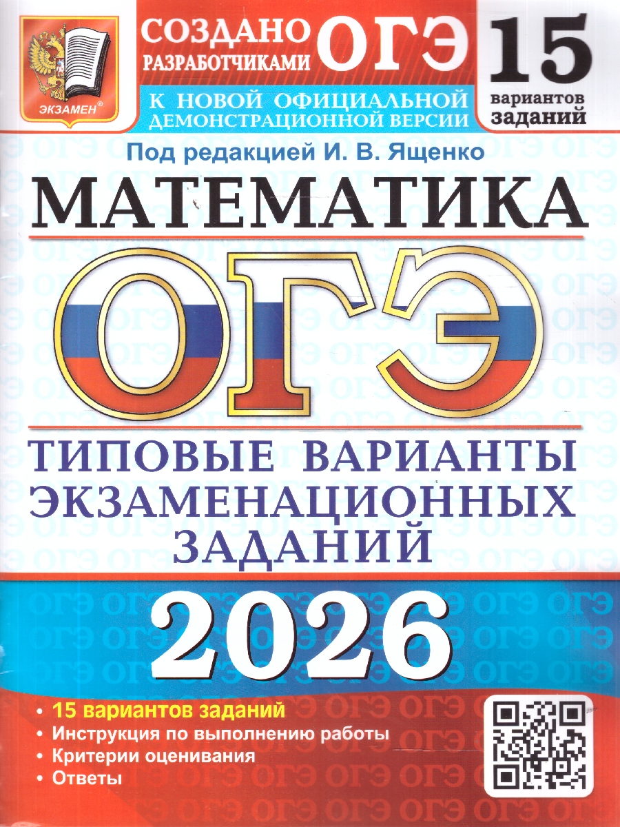 ОГЭ 2026. МАТЕМАТИКА. 15 ВАРИАНТОВ. ТИПОВЫЕ ВАРИАНТЫ ЭКЗАМЕНАЦИОННЫХ ЗАДАНИЙ ОТ РАЗРАБОТЧИКОВ ОГЭ. 15 вариантов заданий. Инструкция по выполнению работы. Критерии оценивания. Ответы.| Издательство | Издательство «Экзамен» |