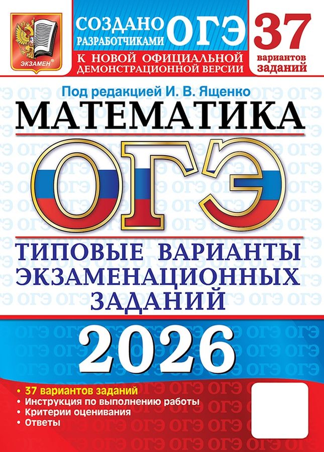 ОГЭ 2026. МАТЕМАТИКА. 37 ВАРИАНТОВ. ТИПОВЫЕ ВАРИАНТЫ ЭКЗАМЕНАЦИОННЫХ ЗАДАНИЙ ОТ РАЗРАБОТЧИКОВ ОГЭ. 37 вариантов заданий. Инструкция по выполнению работы. Критерии оценивания. Ответы.| Издательство | Издательство «Экзамен» |