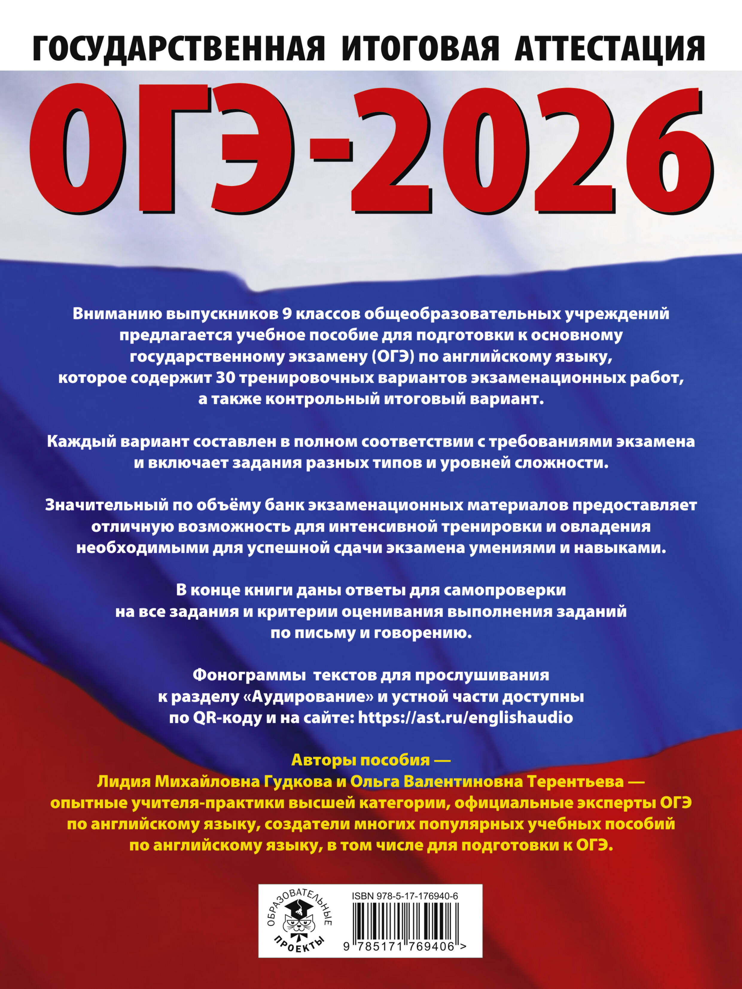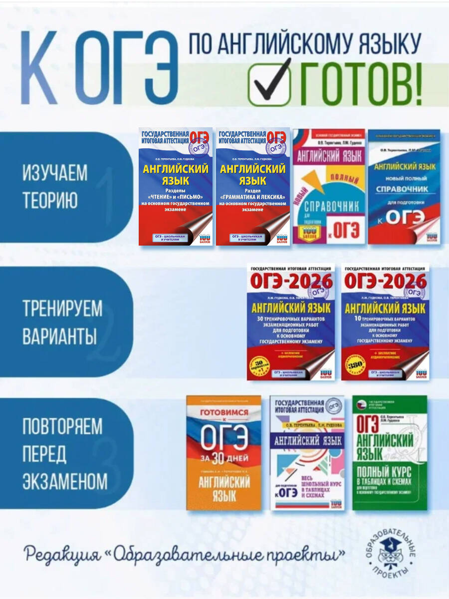 Вниманию выпускников 9-х классов общеобразовательных учреждений предлагается учебное пособие для подготовки к основному государственному экзамену (ОГЭ) по английскому языку, которое содержит 30 тренировочных вариантов экзаменационных работ, а также контрольный итоговый вариант.Каждый вариант составлен в полном соответствии с требованиями экзамена и включает задания разных типов и уровней сложности. Значительный по объёму банк экзаменационных материалов предоставляет отличную возможность для интенсивной тренировки и овладения необходимыми для успешной сдачи экзамена умениями и навыками.В конце книги даны ответы для самопроверки на все задания и критерии оценивания выполнения заданий по письму и говорению. Авторы пособия - Лидия Михайловна Гудкова и Ольга Валентиновна Терентьева - опытные учителя-практики высшей категории, официальные эксперты ОГЭ по английскому языку, создатели многих популярных учебных пособий по английскому языку, в том числе для подготовки к ОГЭ.| Издательство | Издательство "АСТ" |