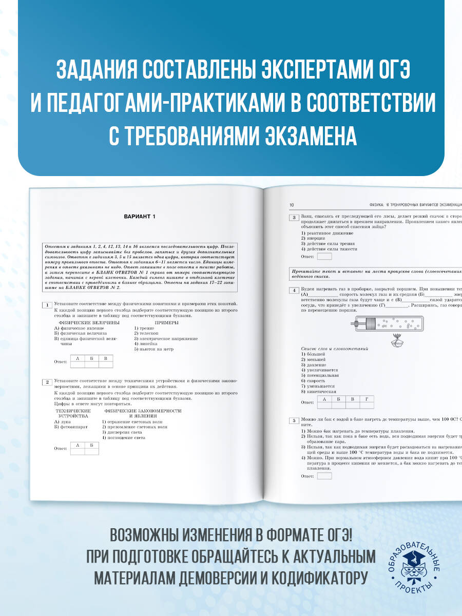 Аннотация: ОГЭ-2026. Физика. 10 тренировочных вариантов экзаменационных работ для подготовки к основному государственному экзамену