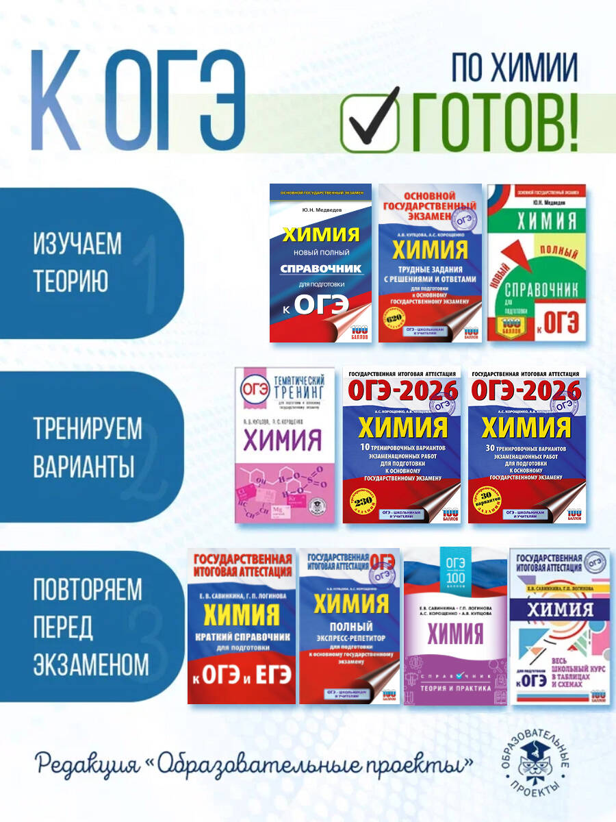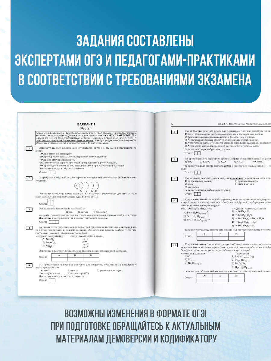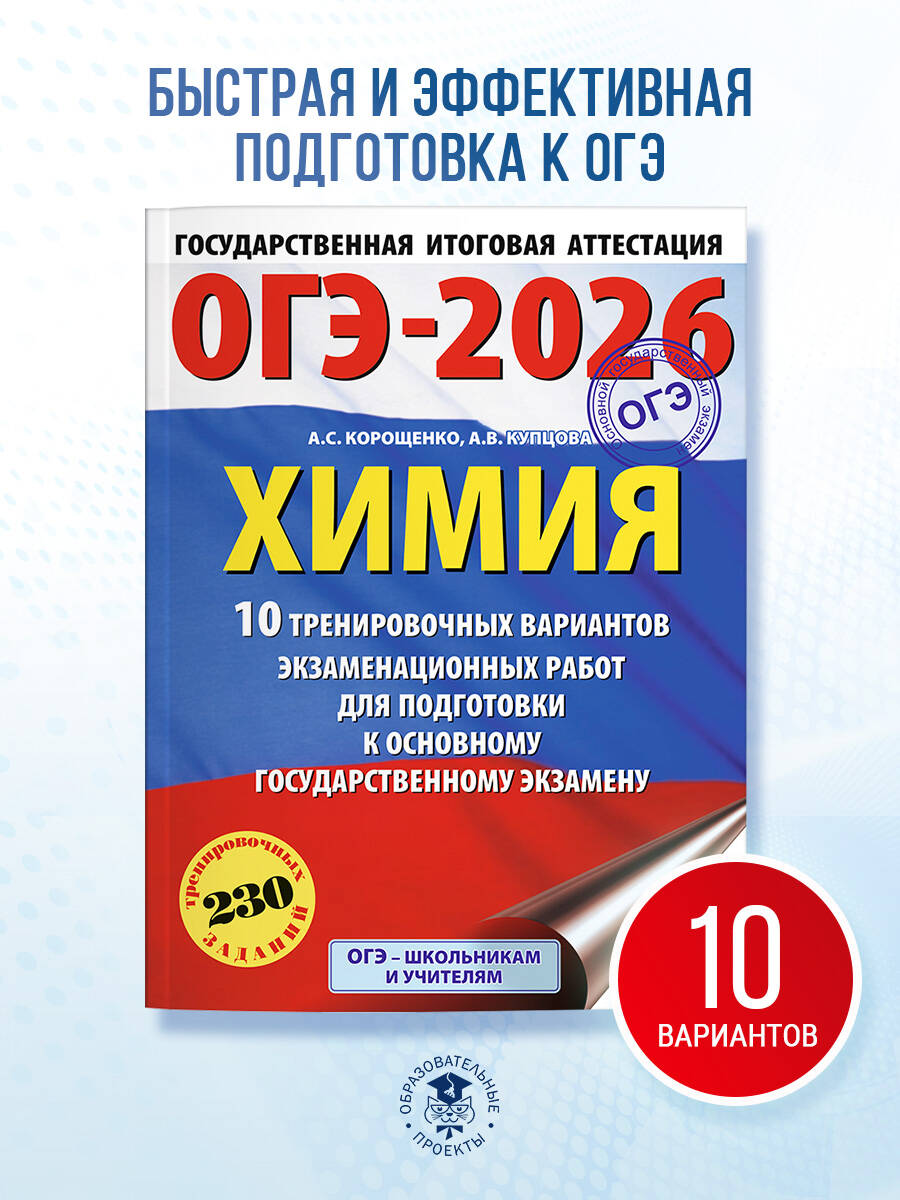 Аннотация: ОГЭ-2026. Химия. 10 тренировочных вариантов экзаменационных работ для подготовки к основному государственному экзамену