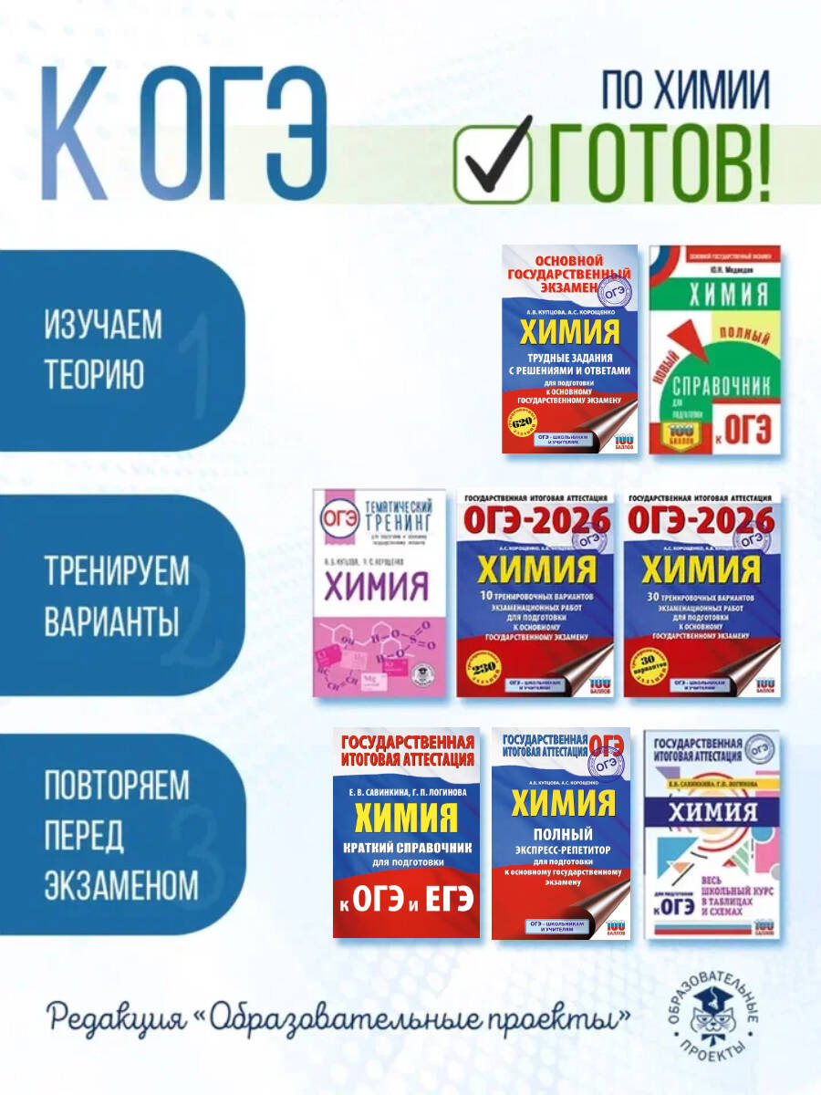Аннотация: ОГЭ-2026. Химия. 30 тренировочных вариантов экзаменационных работ для подготовки к основному государственному экзамену