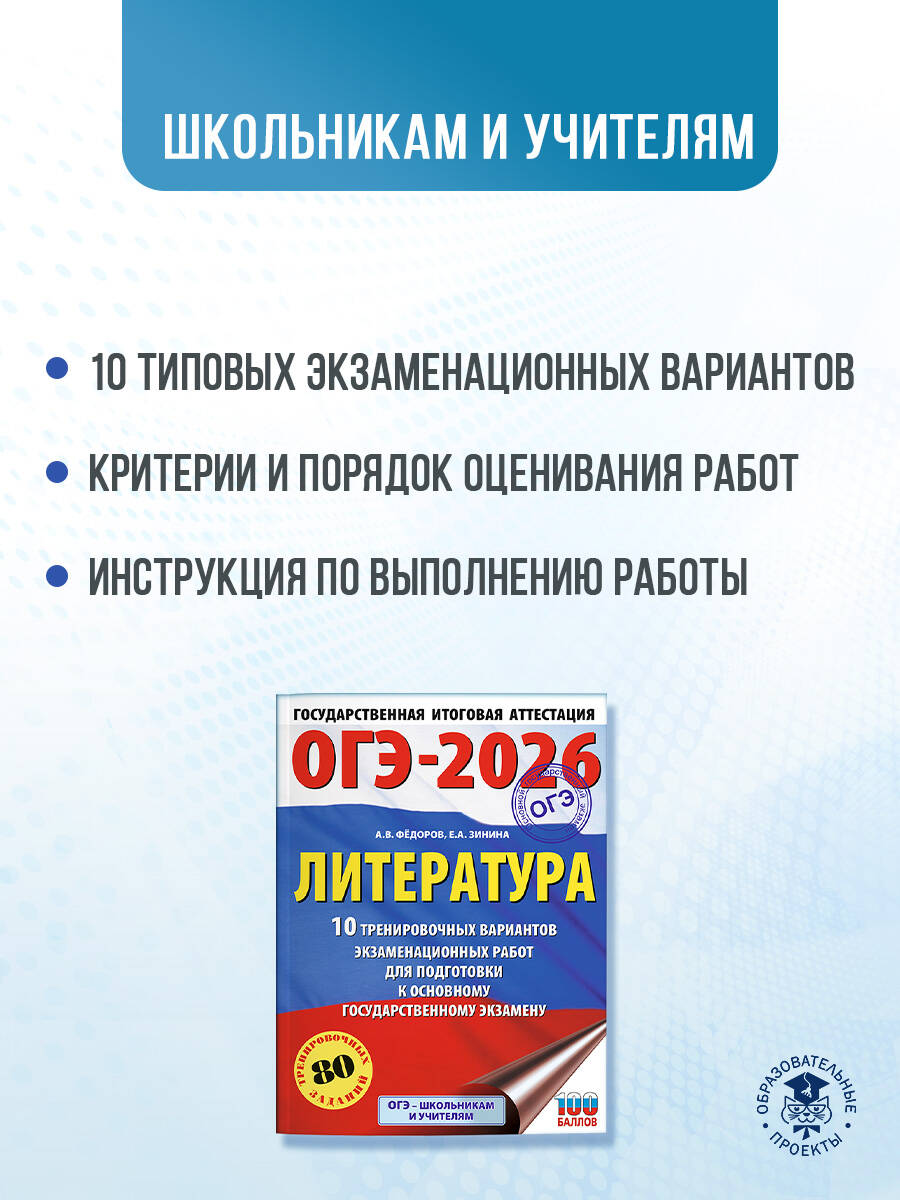 Аннотация: ОГЭ-2026. Литература.10 тренировочных вариантов экзаменационных работ для подготовки к основному государственному экзамену
