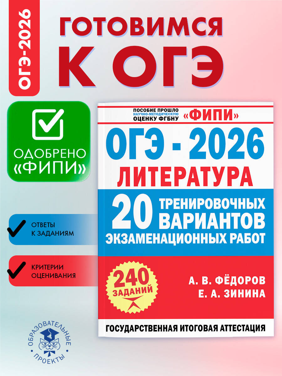 ОГЭ-2026. Литература. 20 тренировочных вариантов экзаменационных работ для подготовки к основному государственному экзамену