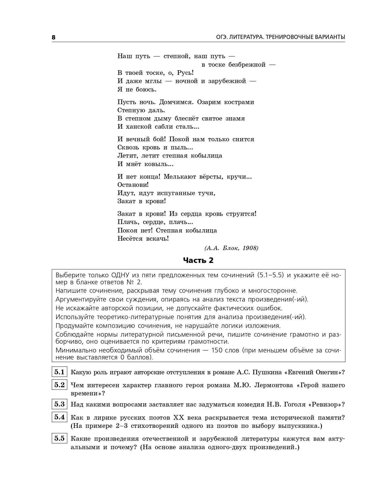 Аннотация: ОГЭ-2026. Литература. Тренировочные варианты. 25 вариантов
