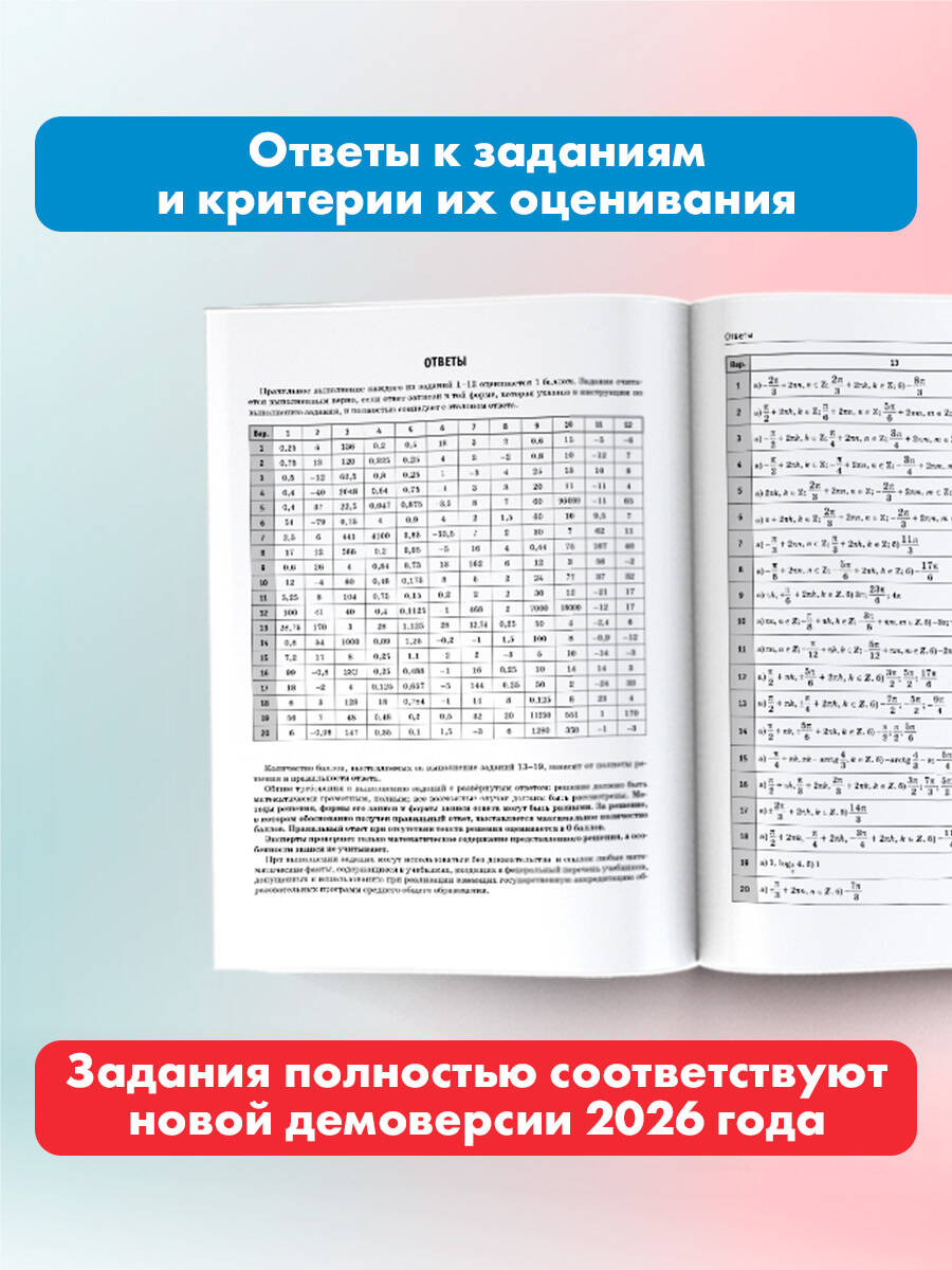Пособие предназначено для учащихся 9-х классов. Оно позволяет в кратчайшие сроки успешно подготовиться к сдаче основного государственного экзамена по математике. Сборник содержит 20 тренировочных вариантов экзаменационных работ, составленных в соответствии с демонстрационным вариантом и спецификацией 2026 года. Для вашего удобства в конце каждого варианта размещены образцы экзаменационных бланков для записи ответов. В пособии включены справочные материалы, выдаваемые вместе с вариантами КИМ на экзамене. Ответы на все задания и критерии оценивания выполнения заданий с развёрнутым ответом помогут в осуществлении контроля и оценки своих знаний. В конце книги, в приложении, представлен разбор заданий с развёрнутым ответом части 2 варианта 1.| Издательство | Издательство "АСТ" |