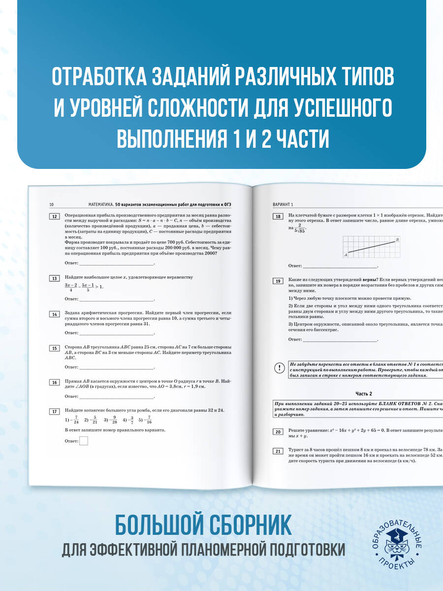 Аннотация: ОГЭ-2026. Математика. 50 тренировочных вариантов экзаменационных работ для подготовки к основному государственному экзамену
