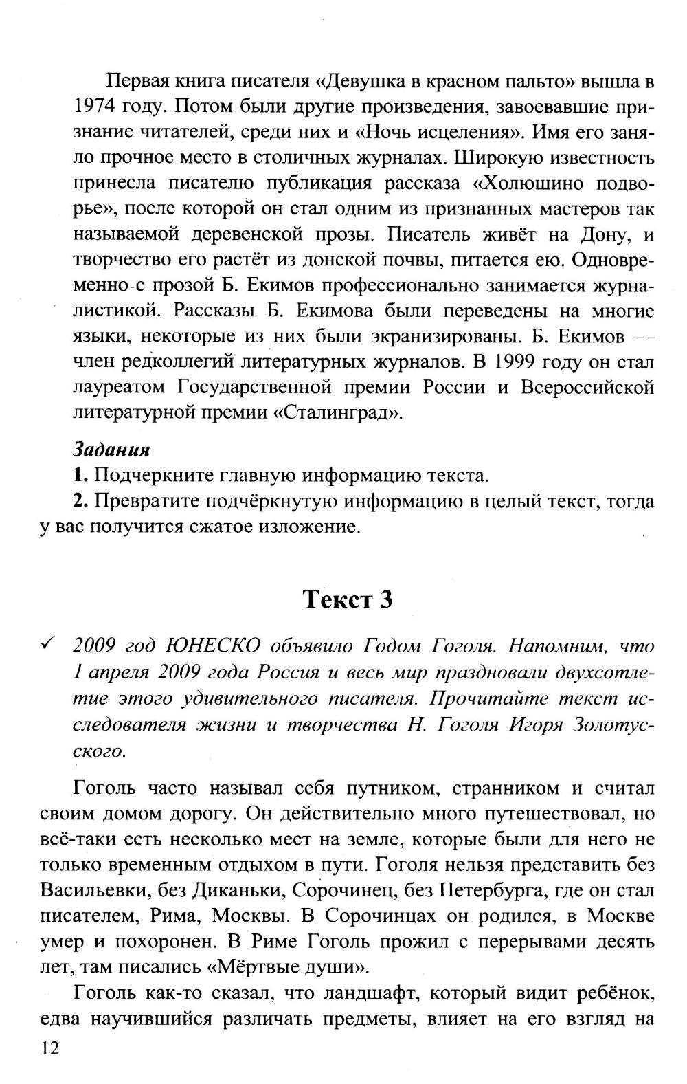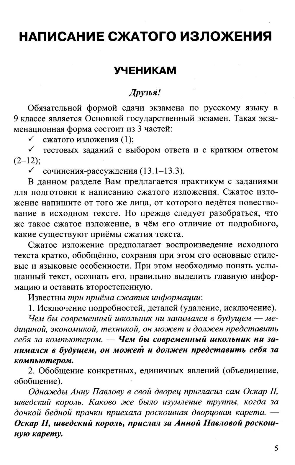 Пособие направлено на комплексную подготовку к Основному государственному экзамену и состоит из двух частей. Первая часть включает методические рекомендации и практики по написанию сжатых изложений. Во второй части приведены типовые варианты экзаменационных заданий ОГЭ от разработчиков, позволяющие определить уровень подготовки учащегося к экзамену. Издание рассчитано на учителей, методистов, репетиторов, учащихся девятых классов.| Издательство | Экзамен |