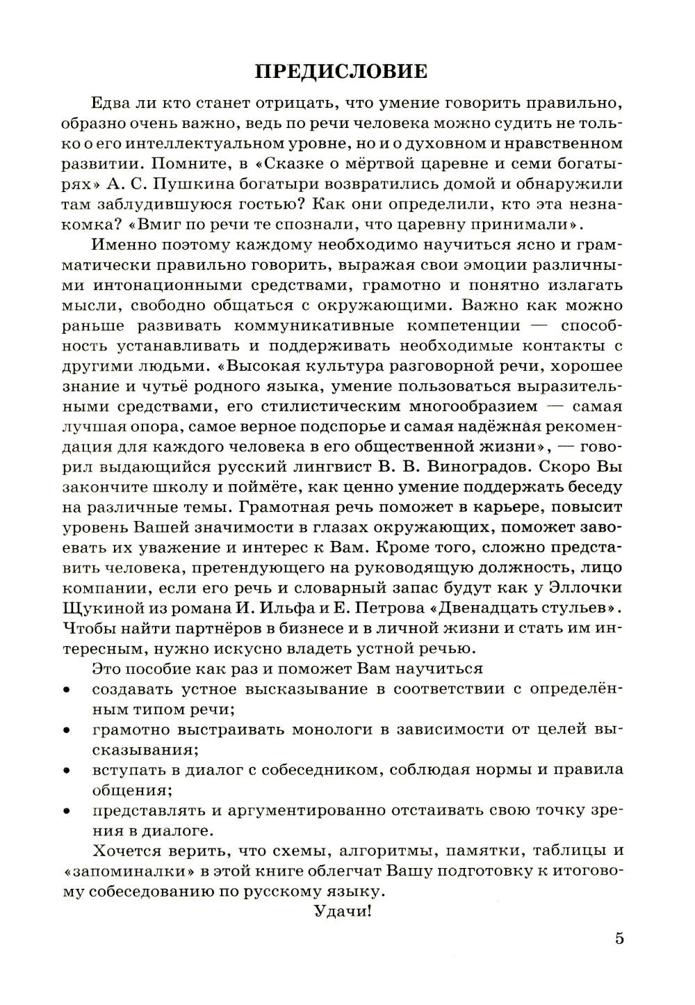 Пособие предназначено выпускникам основной школы для эффективной пошаговой подготовки к итоговому собеседованию по русскому языку. Оно содержит тренировочные задания, а также советы и рекомендации, позволяющие избежать типичных ошибок в устном ответе. Работая с пособием, учащиеся научатся: - грамотно, правильно и выразительно читать и пересказывать тексты; - выстраивать монологи и диалоги на заданные темы в соответствии с определённым типом речи; - излагать материал на основе личного жизненного опыта; - представлять и аргументированно отстаивать свою точку зрения в диалоге. Пособие рекомендовано учащимся 8-9-х классов, учителям и методистам и может быть использовано на уроках и для самостоятельной подготовки.| Издательство | Экзамен |