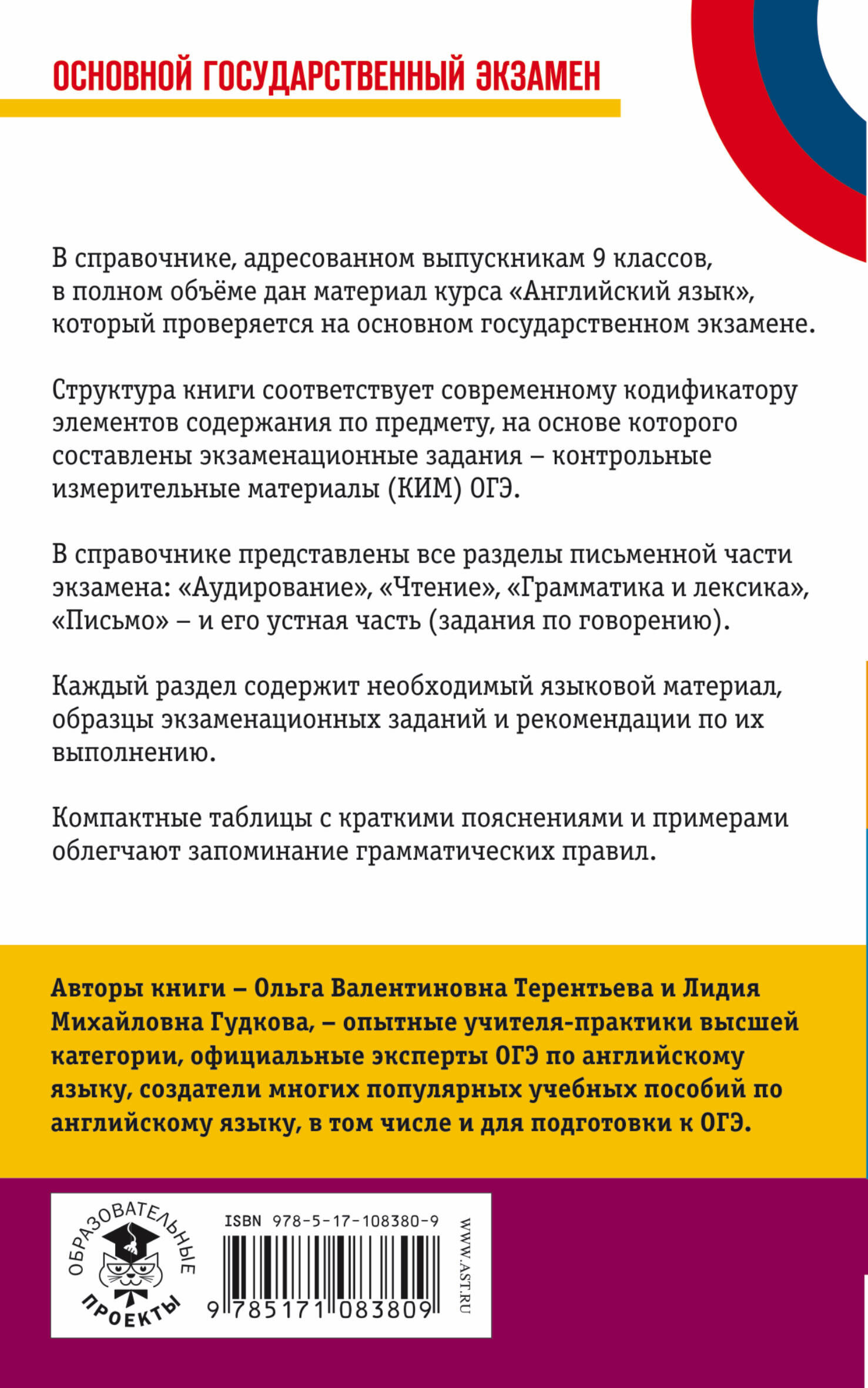 Справочник содержит полную информацию, необходимую для успешной сдачи основного государственного экзамена по английскому языку. Структура книги соответствует современному образовательному кодификатору элементов содержания по предмету, на основе которого составлены контрольные измерительные материалы (КИМ) ОГЭ. В справочнике представлены все разделы письменной части экзамена: «Аудирование», «Чтение», «Грамматика и лексика», «Письмо» - и его устная часть (задания по говорению). Каждый раздел содержит необходимый языковой материал, образцы экзаменационных заданий и рекомендации по их выполнению. В конце книги дан вариант экзаменационной работы с ключами. Справочник адресован учащимся 9 классов образовательных организаций, может быть полезен учителям для работы на уроках . Авторы пособия - опытные учителя-практики высшей категории, официальные эксперты ОГЭ по английскому языку.| Издательство | Издательство "АСТ" |
