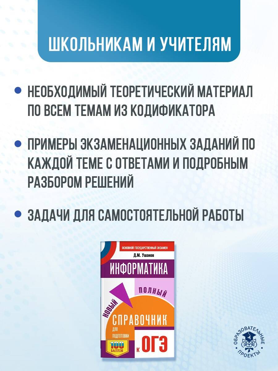 Аннотация: ОГЭ. Информатика. Новый полный справочник для подготовки к ОГЭ