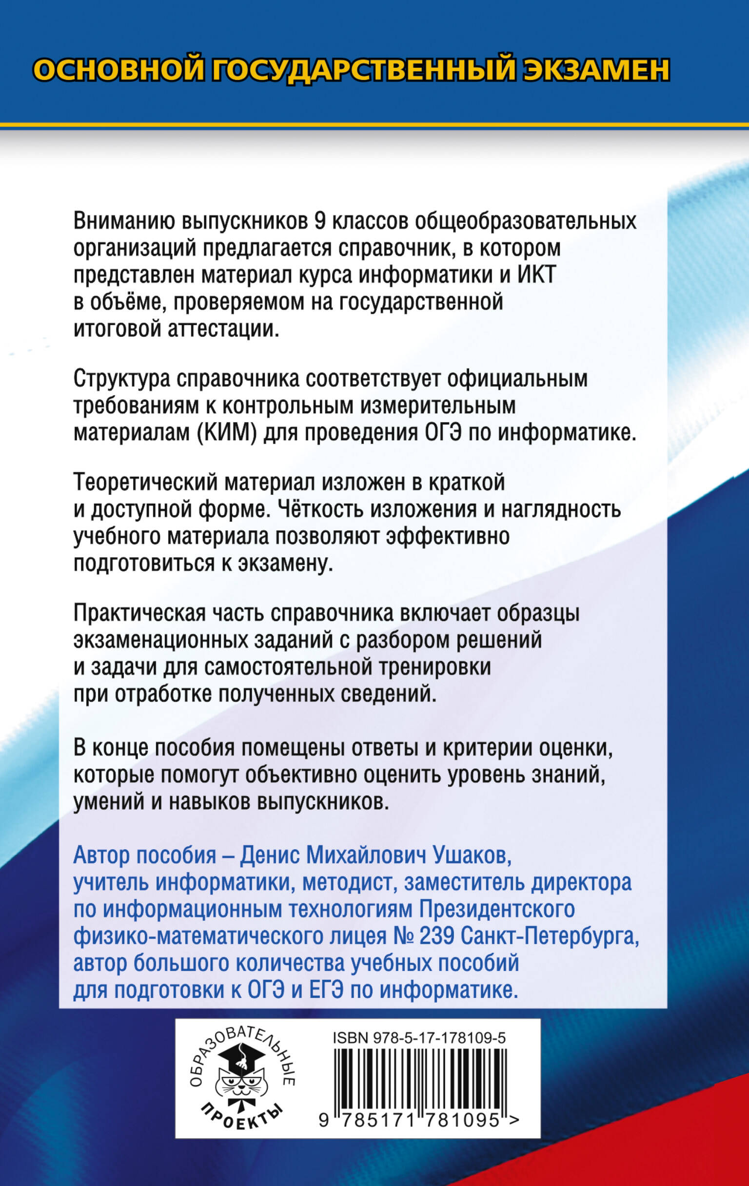 В справочнике представлен материал курса информатики в объёме, проверяемом на государственной итоговой аттестации. Структура справочника соответствует современному кодификатору элементов содержания по предмету, на основе которого составлены контрольные измерительные материалы (КИМы) основного государственного экзамена (ОГЭ). Книга будет незаменимым помощником при подготовке к экзамену в формате ОГЭ, при изучении нового материала, повторении пройденных тем.| Издательство | Издательство "АСТ" |