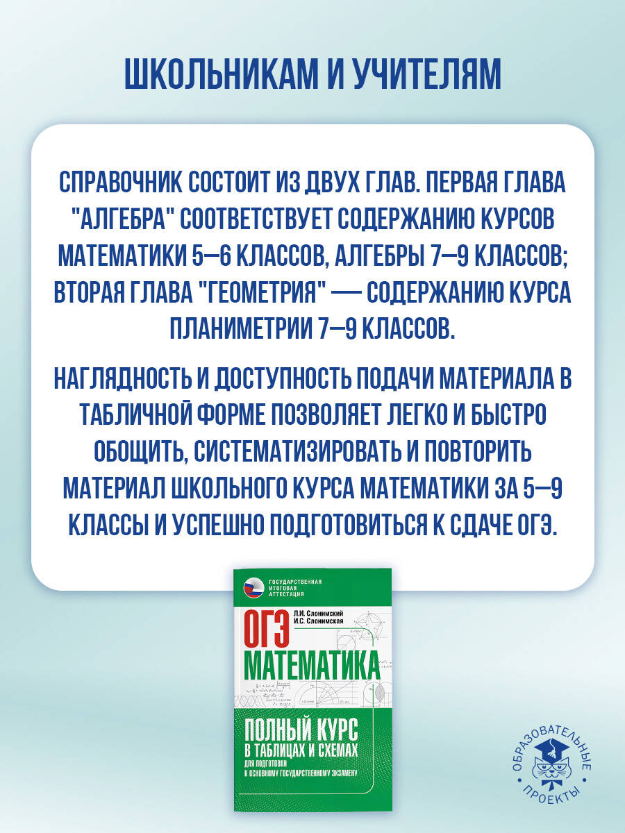 Аннотация: ОГЭ. Математика. Полный курс в таблицах и схемах для подготовки к ОГЭ