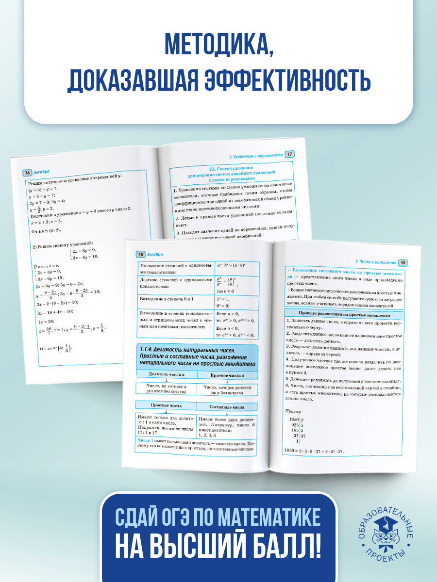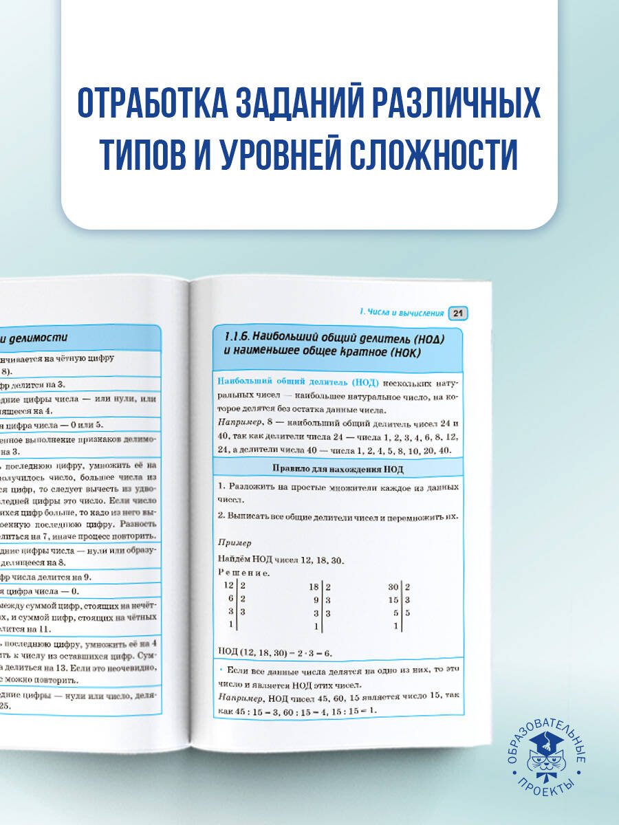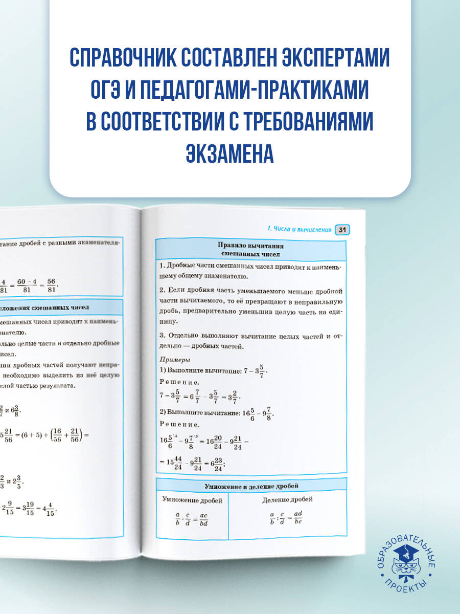 Пособие содержит материал курса "Математика" в объёме, проверяемом на основном государственном экзамене. Структура книги соответствует современному кодификатору элементов содержания по предмету, на основе которого формируются экзаменационные задания. Справочник состоит из двух глав. Первая глава "Алгебра" соответствует содержанию курсов математики 5-6 классов, алгебры 7-9 классов; вторая глава "Геометрия" - содержанию курса планиметрии 7-9 классов. Наглядность и доступность подачи материала в табличной форме позволяет легко и быстро обощить, систематизировать и повторить материал школьного курса математики за 5-9 классы и успешно подготовиться к сдаче ОГЭ.| Издательство | Издательство "АСТ" |