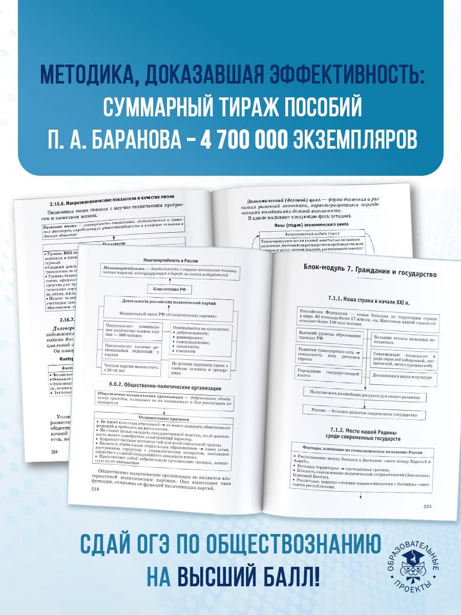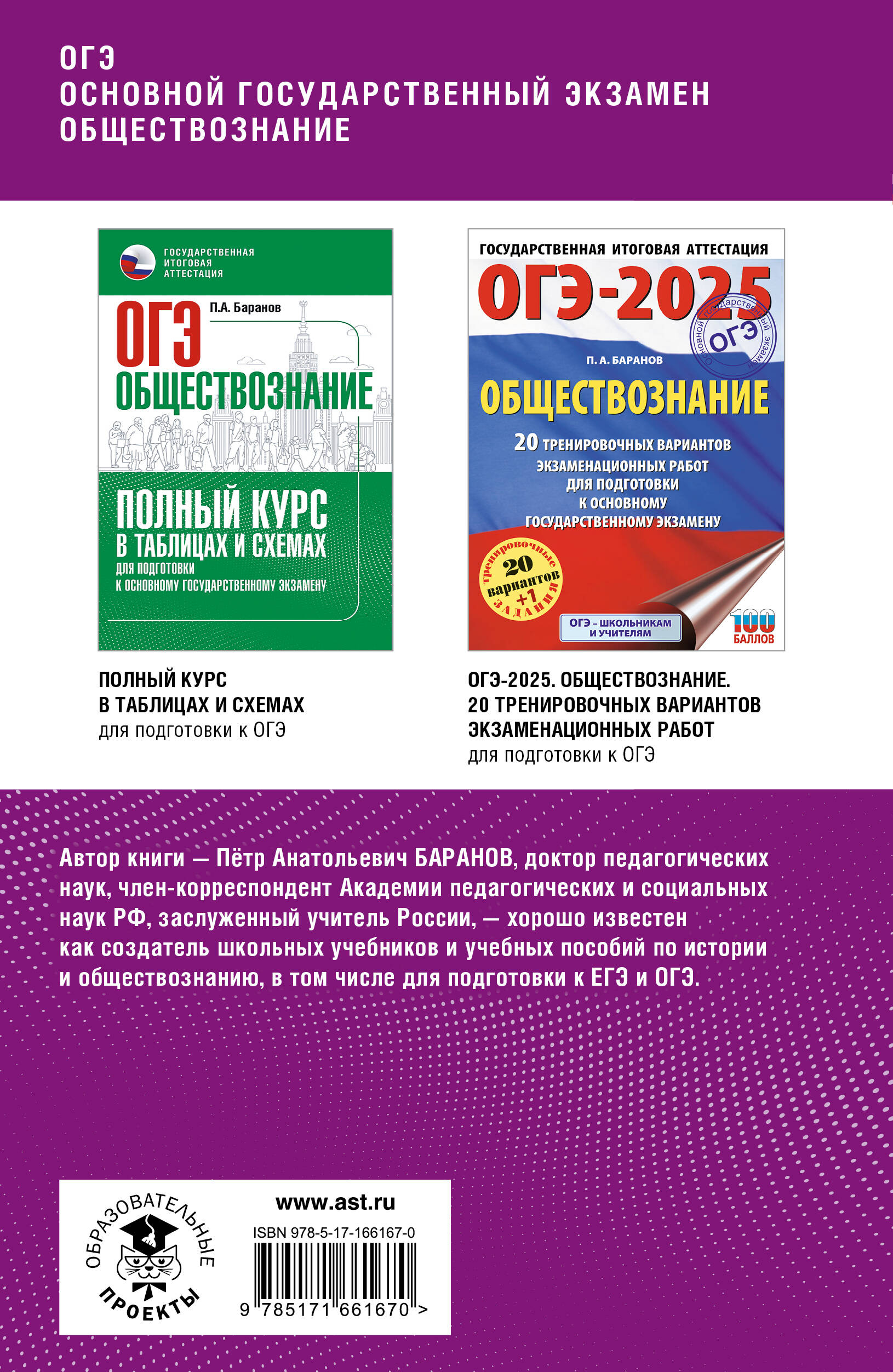 Настоящее пособие - уникальный курс, основанный на комплексной подготовке учащихся 9 классов к основному государственному экзамену по обществознанию. Структура книги соответствует современному кодификатору элементов содержания по предмету, на основе которого составлены контрольные измерительные материалы ОГЭ. Шесть блоков-модулей книги: "Человек и общество", "Сфера духовной культуры", "Экономика", "Социальная сфера", "Сфера политики и социального управления", "Право" включают теоретический материал, содержание которого представлено в лёгкой для запоминания форме и в объёме, проверяемом на экзамене, и образцы заданий всех типов и уровней сложности, нацеленных на отработку умений быстрого и грамотного их решения. В конце книги представлен тренировочный вариант экзаменационной работы по всему курсу. Ко всем заданиям даны ответы, что позволяет оценить уровень знаний и умений.| Издательство | Издательство "АСТ" |