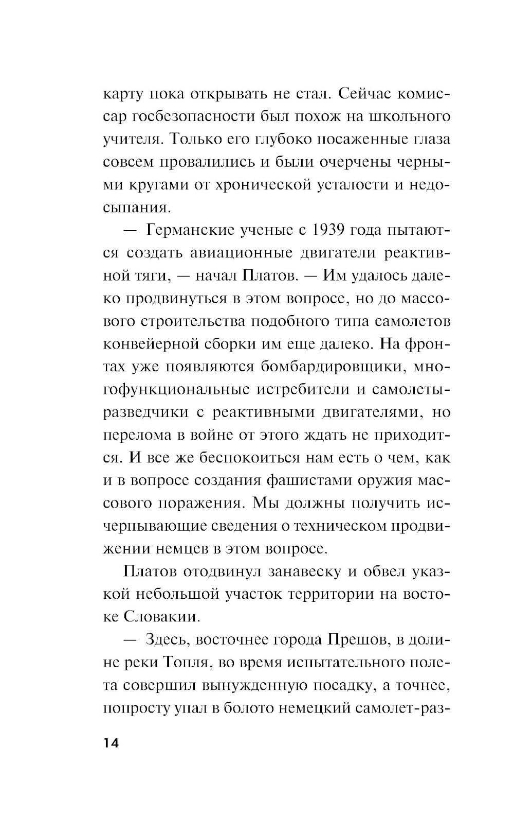 1944 год. В небе над Словакией фашисты проводят испытания нового образца реактивного истребителя. Однако во время полета двигатель отказывает, и опытная модель самолета падает в болото. Летчику и бортинженеру удается выпрыгнуть с парашютом. Узнав об аварии, советская контрразведка решает захватить упавшую машину и направляет в район крушения группу спецназа подполковника Максима Шелестова. Тем временем спасшегося бортинженера абвер планирует переправить в Германию вместе с его секретным отчетом об испытаниях. Узнав об этом, Шелестов без промедления предлагает товарищам дерзкий план...| Издательство | Эксмо |