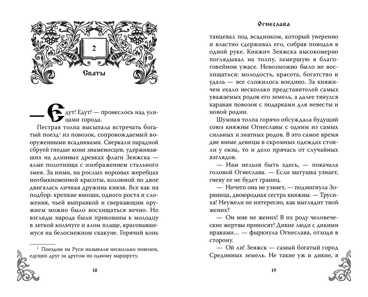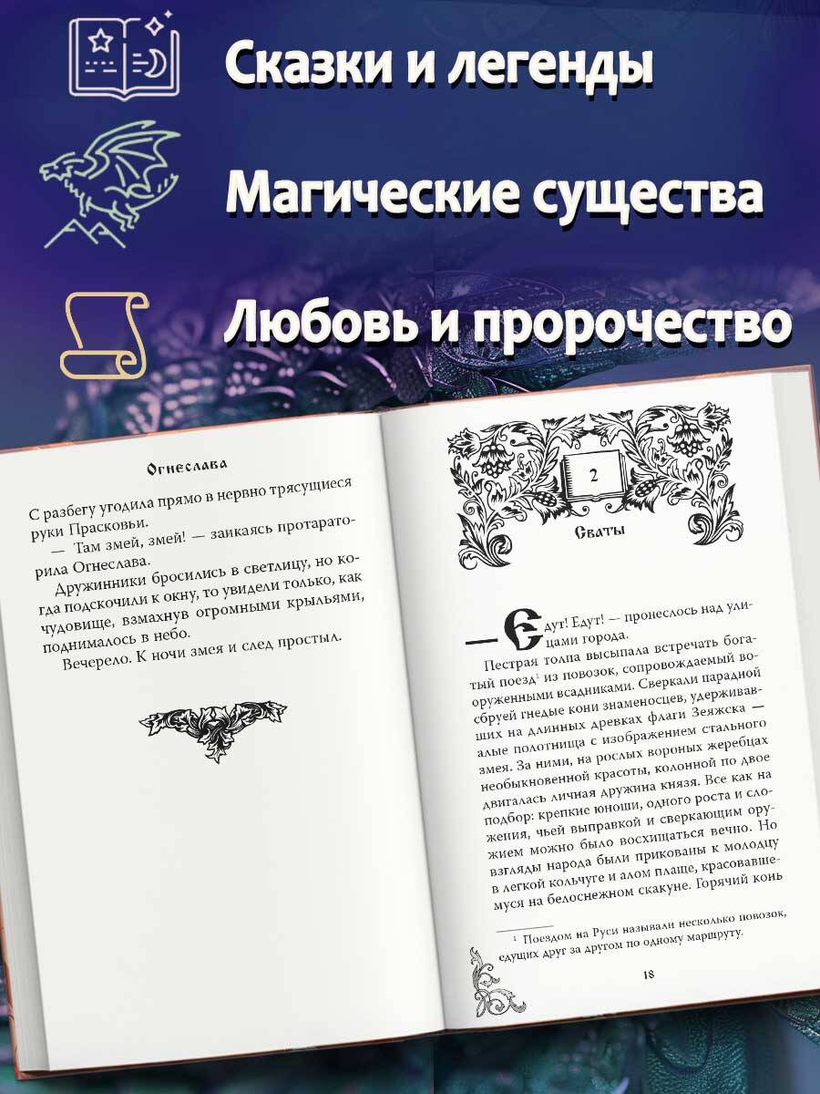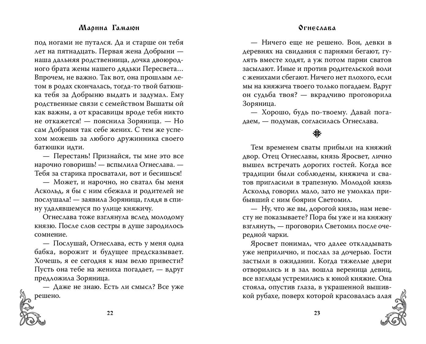 «Огнеслава» - многообещающий дебют Марины Гамаюн! Романтическая фэнтези-дилогия на основе славянского фольклора, в котором отсылки к сказкам и легендам переплетаются с захватывающей самобытной историей. Юная княжна Огнеслава отправляется в далекий Зеяжск к своему суженому. Стать княгиней богатого и знатного рода - мечта многих девиц, особенно, когда жених молод и хорош собой. Вот только ее родня не рада, потому как богатства тем землям достались высокой ценой. Древний крылатый змей охраняет город, предсказывая будущее и уничтожая врагов. Дважды в год змею отдают в дар молодца или девицу. Жертвой чудовища может стать любой... Терзаясь сомнениями, Огнеслава обращается за помощью к ведьме, и та предсказывает: «Мужем тебе князь так и не станет, предашь ты его и погубишь!» Неужели она окажется погибелью жениха и причиной многих бед? Чтобы избежать нежеланной судьбы, княжна должна вонзить заговоренный клинок в сердце того, кто носит кольцо в виде стальной змеи. Но что, если оно окажется на руке князя? Сможет ли Огнеслава совладать с судьбой? Или станет добычей змея? Роман занял пятую строчку в рейтинге славянского фэнтези на портале Литмаркет! Читателя ждет мир, полный колдовства и магических существ, а также борьба за власть, интриги, тайны и, конечно же, любовь! Искренняя, чистая и несокрушимая!| Издательство | ООО "Издательство "Эксмо" |