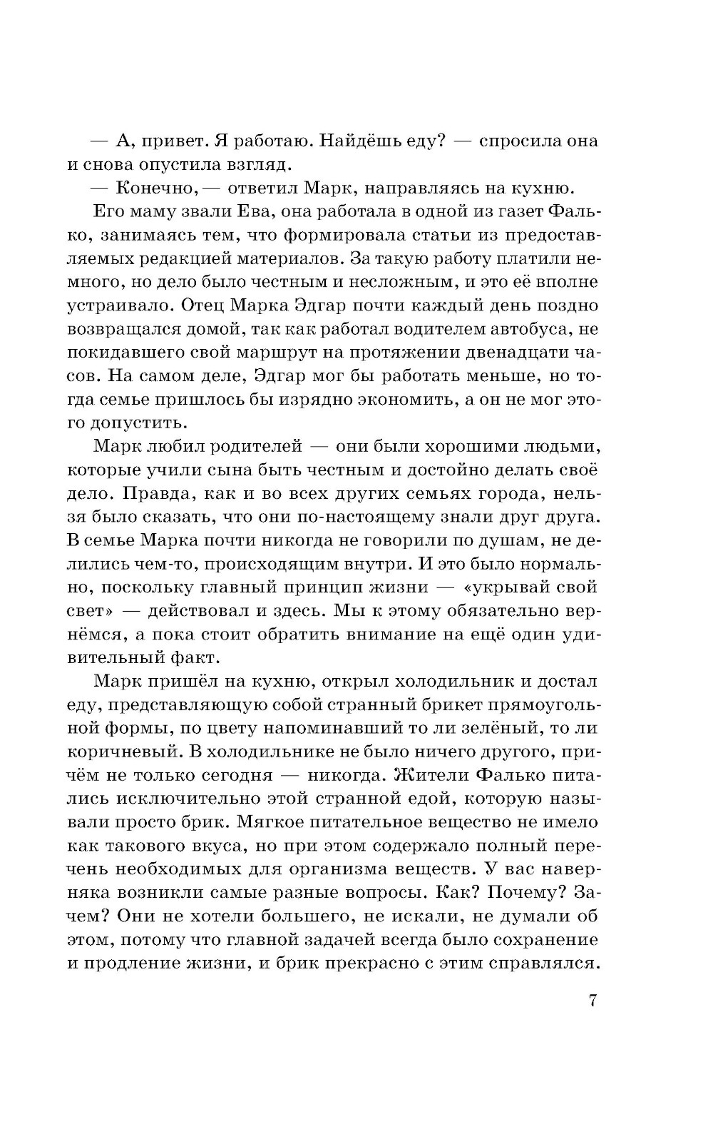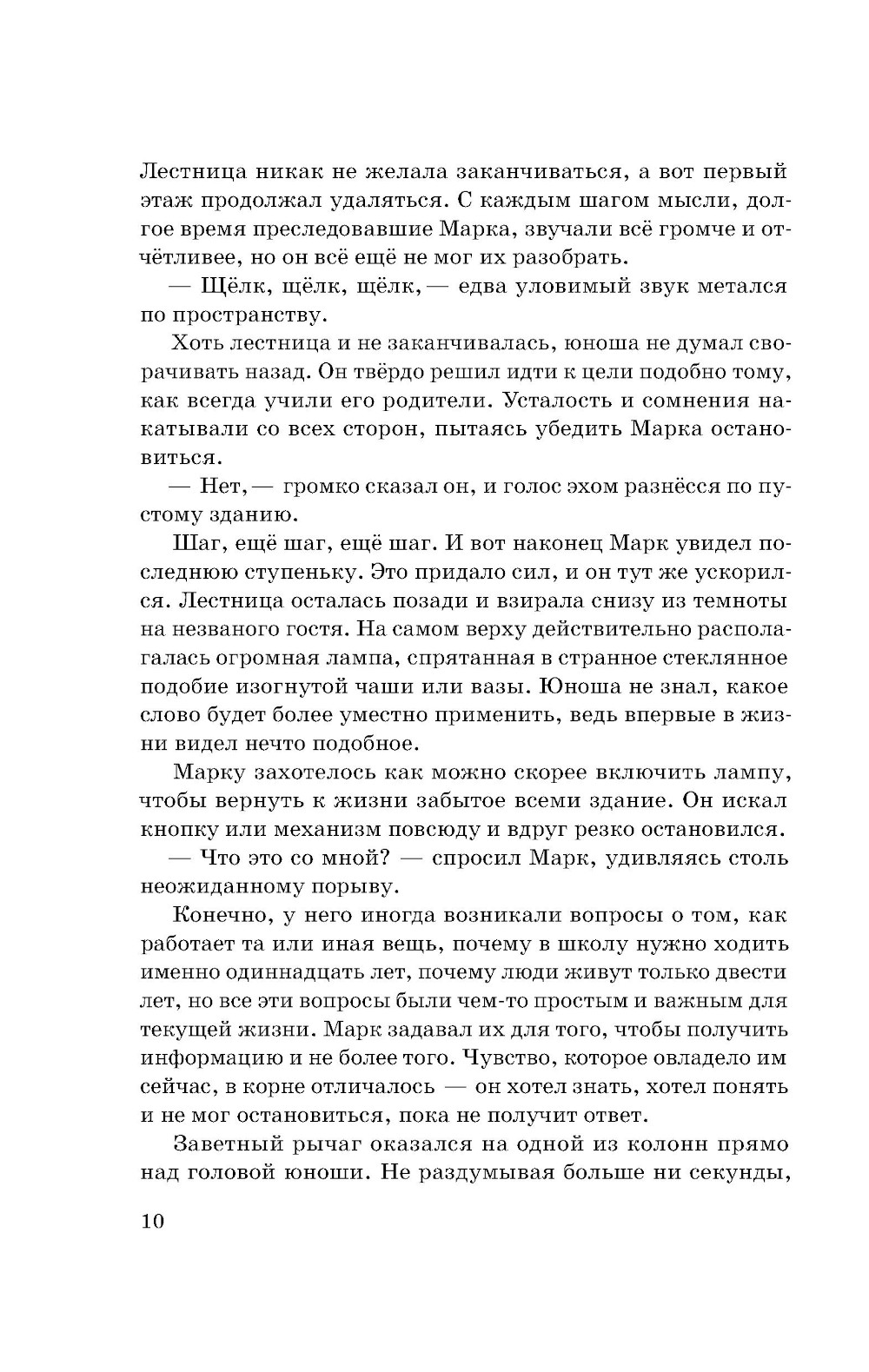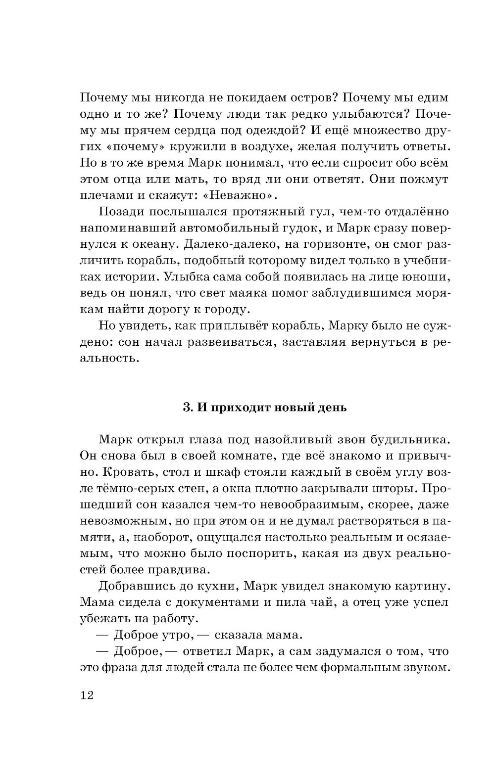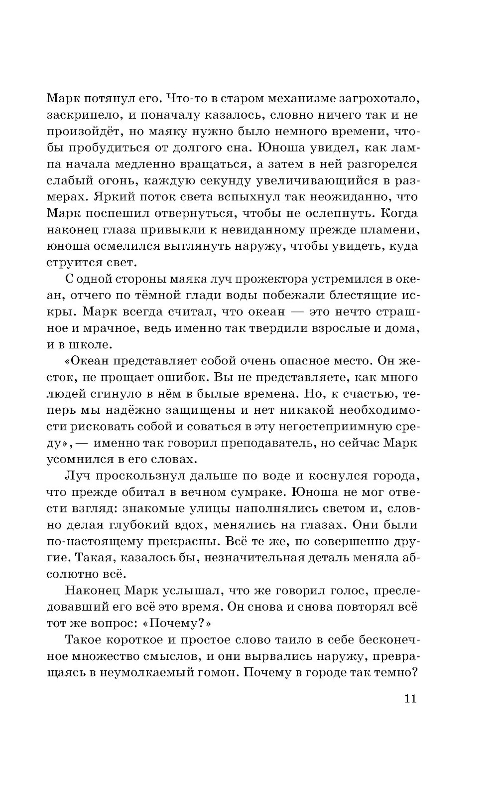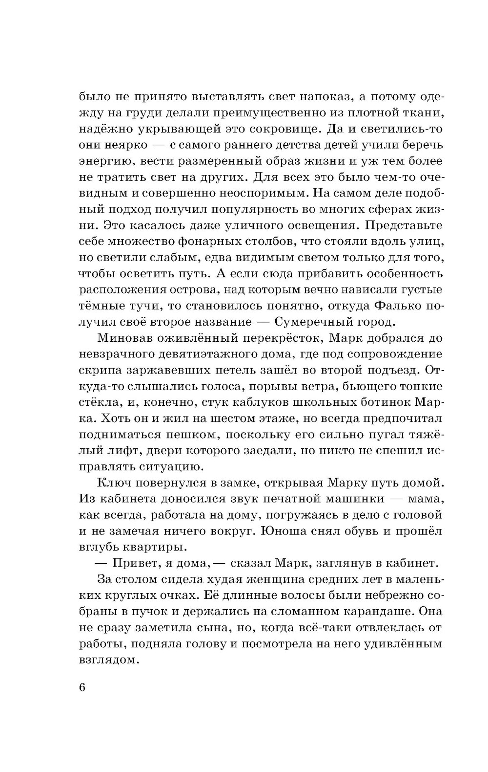 Бескрайнее море окружало окутанный вечными сумерками город, где жили люди, чьи сердца могли светиться, но они предпочитали прятать свой свет. Однажды юноша по имени Марк задаётся простым, но очень важным вопросом: «Почему?» Почему мы так живём? Почему нельзя мечтать о великом? Почему мы должны скрывать свой свет? Отсюда начинается его непростой путь, на котором он встретит верных друзей и столкнётся с тайнами бетонного гиганта, дремлющего под покрывалом непроглядных облаков.| Издательство | Феникс |