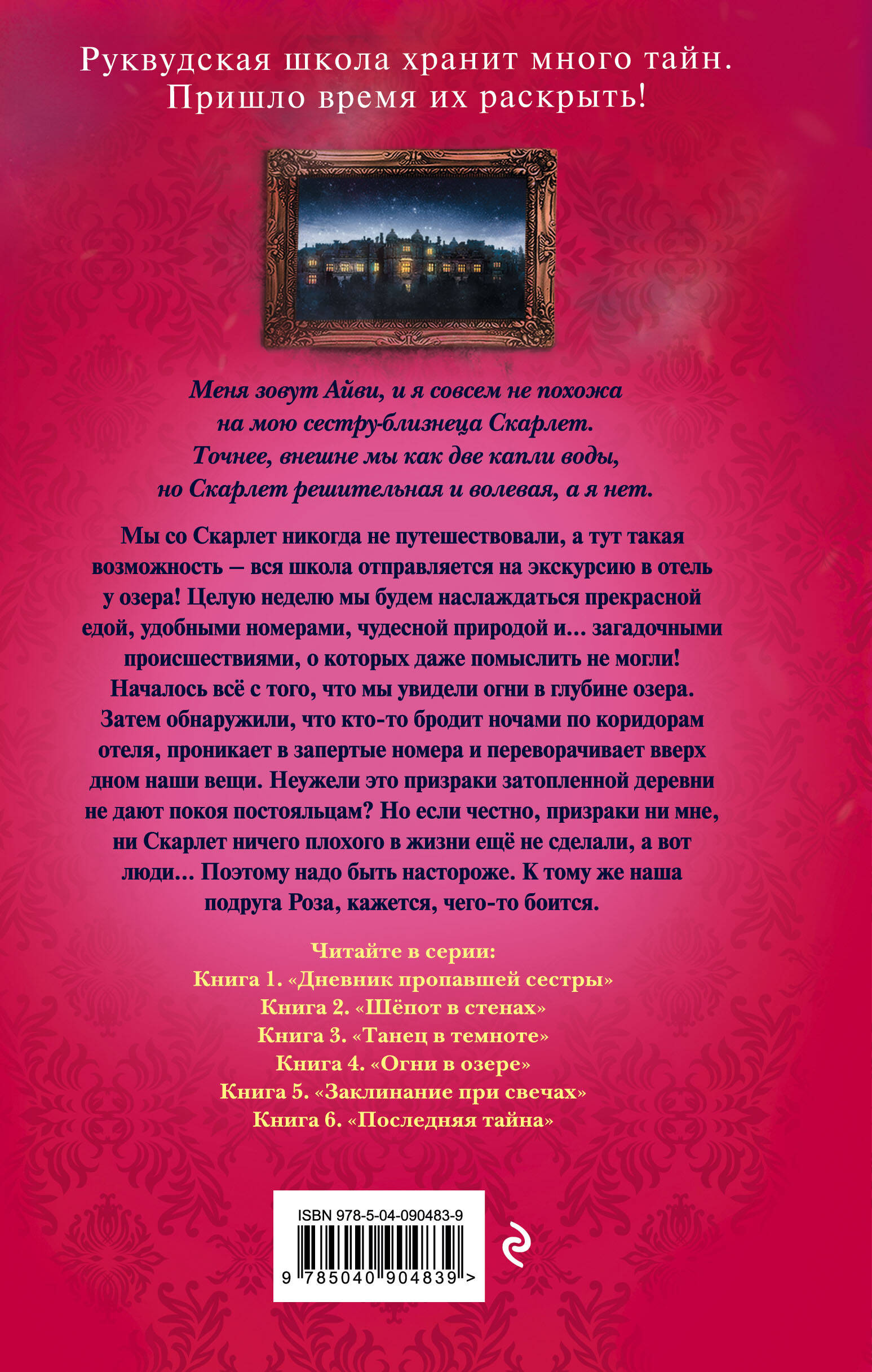 Великолепный английский детектив в антураже загадочной и зловещей школы-интерната. История сестёр-близняшек, которым предстоит разобраться в тайнах и загадках своего учебного заведения. С тех пор, как в нашу школу попала молчаливая и стеснительная Роза, мы с сестрой мучились вопросом, кто она? Какую тайну скрывает эта девочка без прошлого, сохранившая от прежней жизни только золотой кулон и… умение обращаться с лошадьми. И вот нам представился случай разгадать эту загадку - мы всей школой отправились в отель у озера! Но оказалось, не одна Роза хранит секреты. Темные воды озера тоже полны тайн. Кто-то выходит из него по ночам и бродит по отелю, оставляя на полу мокрые следы и пугая постояльцев. А вечерами, если приглядеться, в глубине озера видны огни. Беспроигрышный приём, когда в конце каждой книги дается намек на новую тайну и завязку новых приключений, сделает любого заядлым читателем! Каждая книга серии входила в Топ-100 книг для детей и подростков.| Издательство | ООО "Издательство "Эксмо" |
