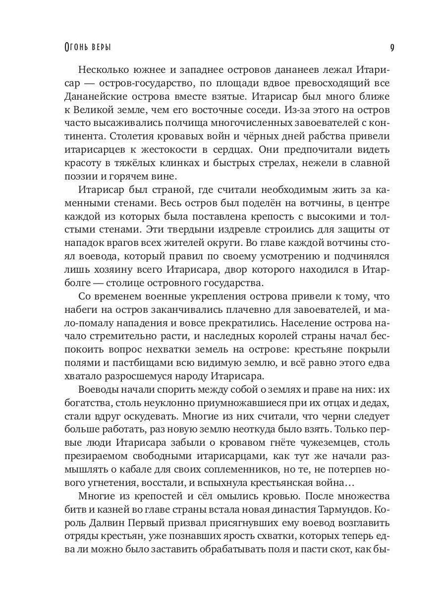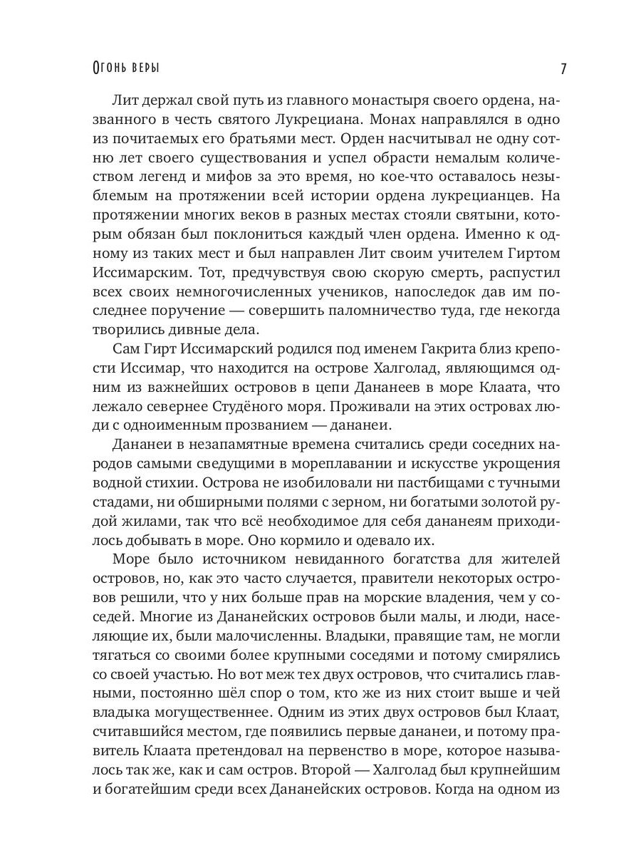 В мире, охраняемом волей Единого бога, жизнь идет своим чередом. Сменяют друг друга королевские династии, растут дети, земля дает урожай, а морские разбойники по-прежнему грабят проходящие суда… Ярким весенним днем послушник Лит, ученик чародея, отправляется к месту своего служения. Многие испытания и встречи ждут его на пути, великие воины, отважные мореплаватели, ему предстоит обрести истинного друга и познать боль утраты. И лишь родная земля поможет ему узнать, так ли крепок его Огонь веры.| Издательство | Т8 RUGRAM |