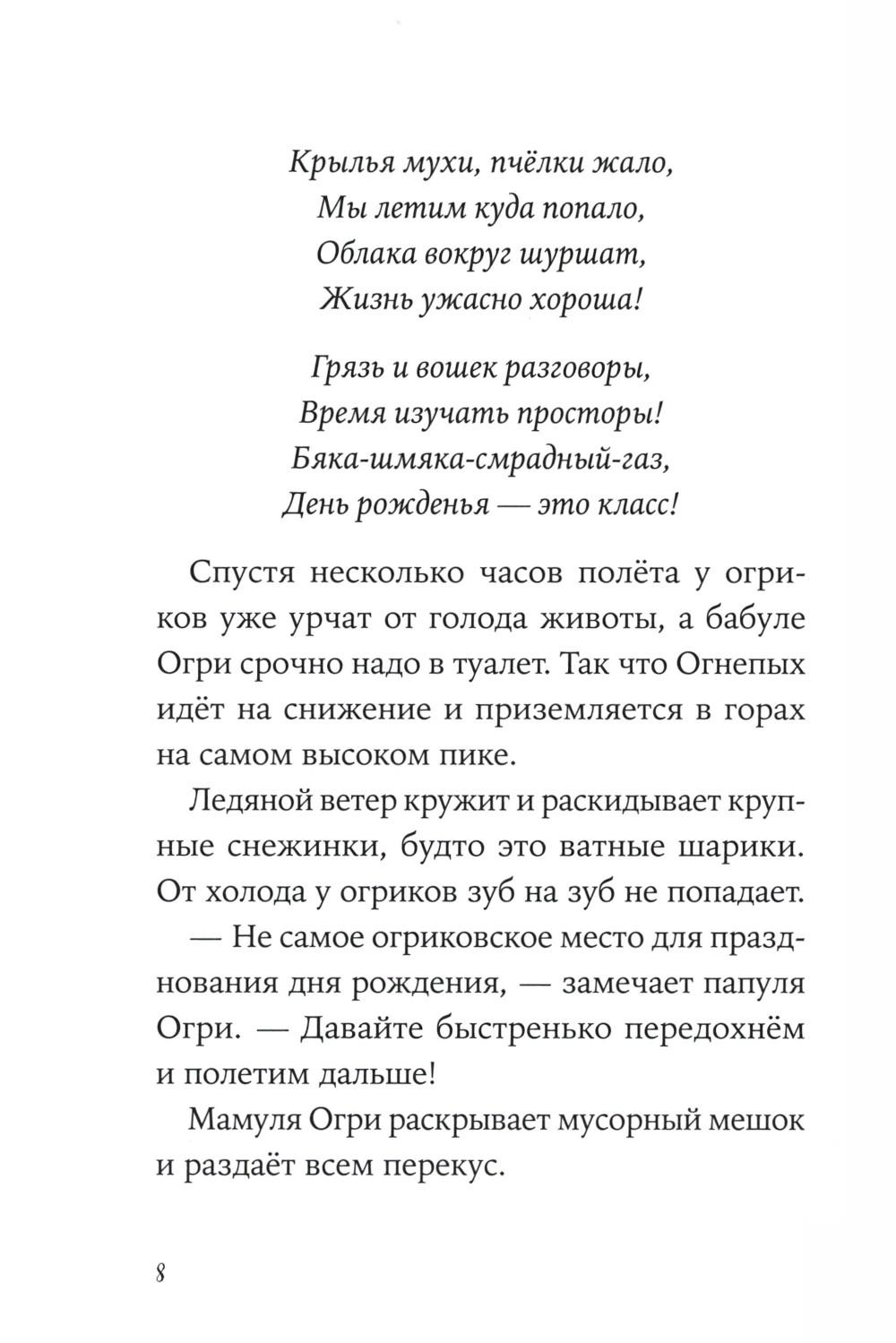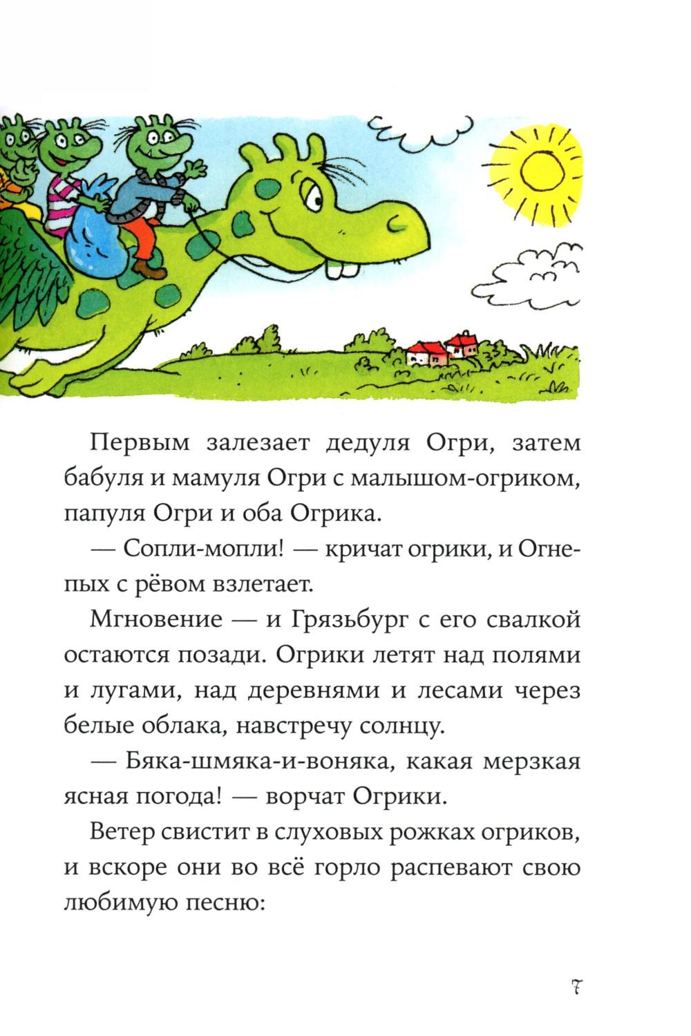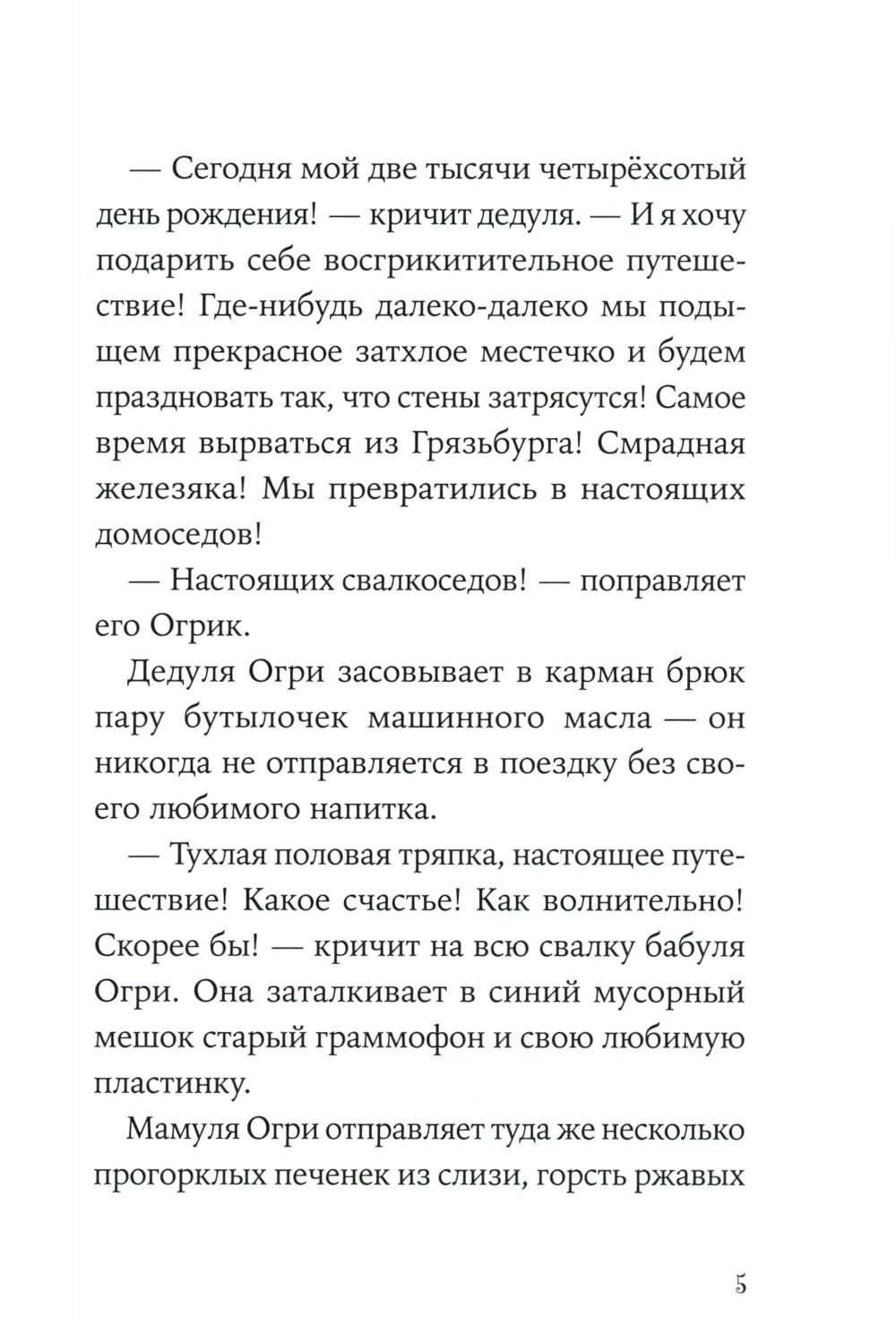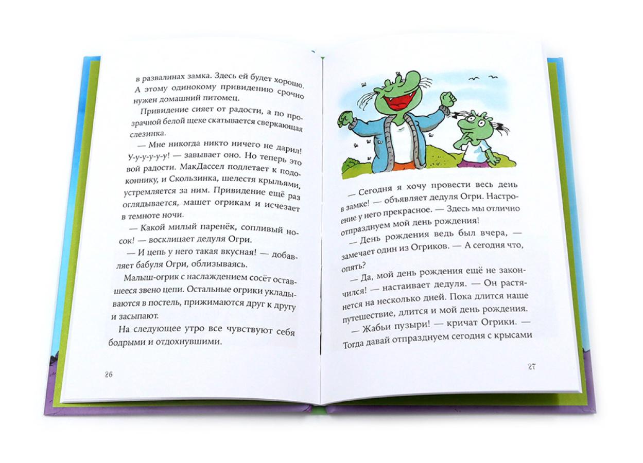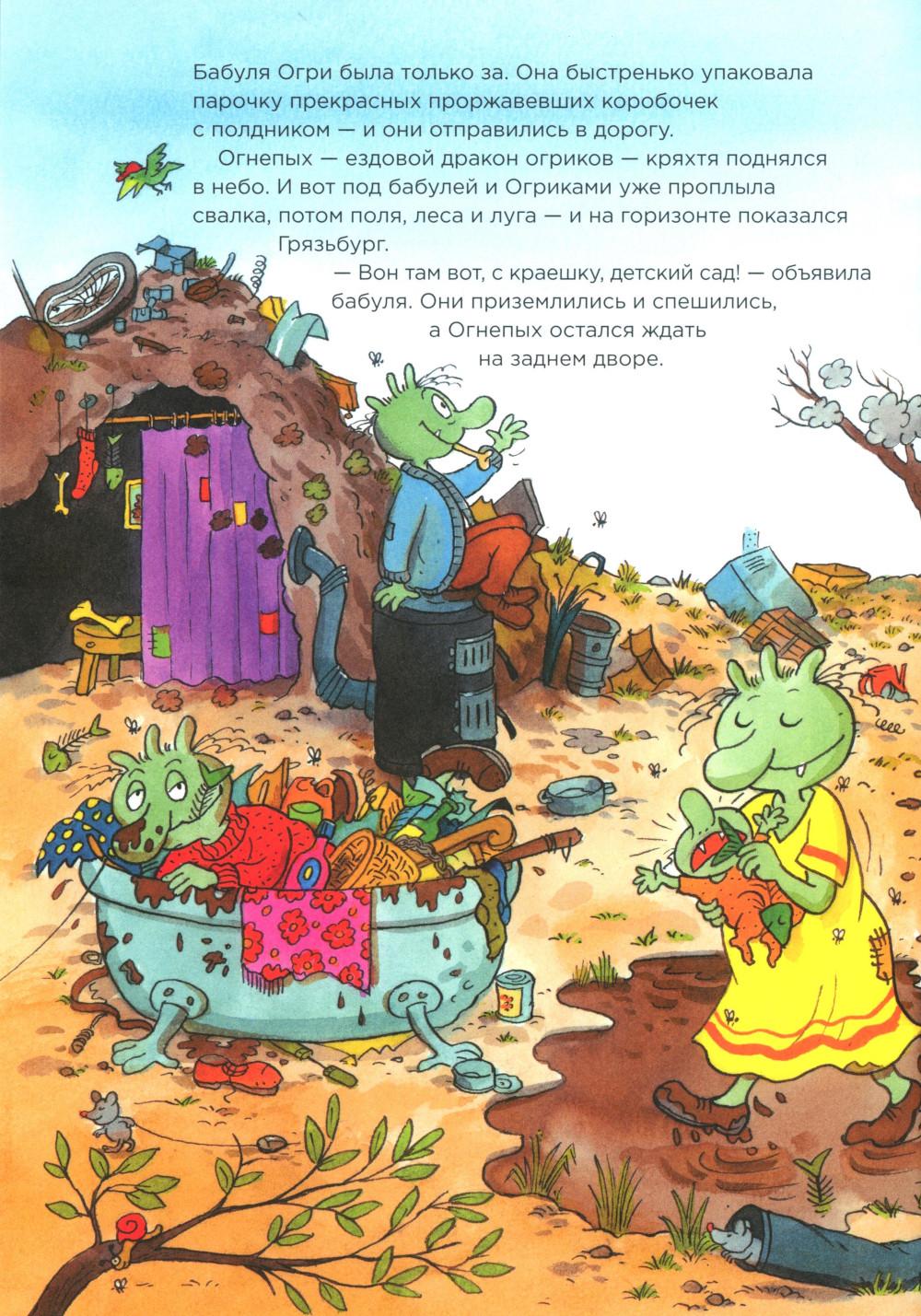 Комплект содержит книги. «Огрики. Куда хотим, туда летим!» Огрики - зелёные существа, которые живут на свалке. Они едят шнурки и гвозди, играют консервными банками и постоянно попадают в разные переделки. В этот раз забавная семейка решила улететь из Грязьбурга, чтобы отпраздновать день рождения дедули. Куда? Да куда глаза глядят! Ведь самое главное в путешествии - хорошая компания и весёлые приключения! Огриков ждёт вкуснейшее лакомство в мире, побег от итальянской полиции и встреча с настоящим привидением! Подходит для самостоятельного чтения для детей семи лет и старше. «Огрики в детском саду» Огрики всегда жили на свалке и ничего не знали про детский сад. А когда случайно про него услышали, заявили бабуле Огри, что им туда точно надо! И вот они в садике, а у воспитательницы, как назло, прорвало дома -трубу. Но расходиться никто не хочет... Хорошо, что у бабушки Огри всегда есть план! Сначала рисуем, катаемся на Огнепыхе и прыгаем по лужам, потом поём песню. В общем, идей полно! В конце дня вся группа осталась довольна, а Огрики поняли, что детский сад - это весело и совсем не страшно!| Издательство | Альпина Паблишер |
