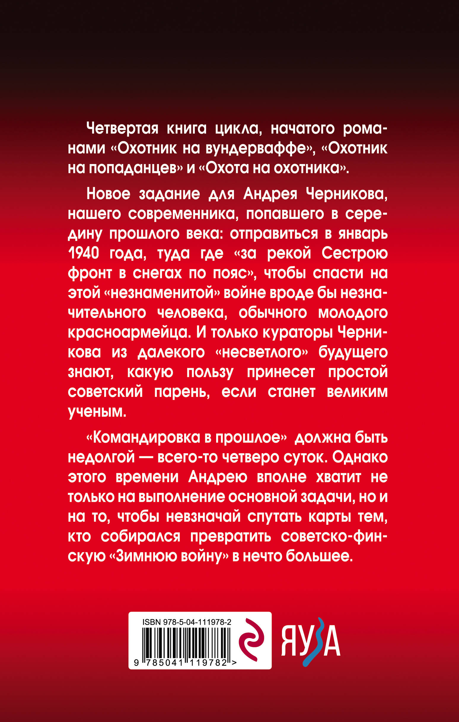 Четвертая книга цикла, начатого романами «Охотник на вундерваффе», «Охотник на попаданцев» и «Охота на охотника». Новое задание для Андрея Черникова, нашего современника, попавшего в середину прошлого века: отправиться в январь 1940-го года, туда где «За рекой Сестрою фронт в снегах по пояс», чтобы спасти на этой «незнаменитой» войне вроде бы незначительного человека, обычного молодого красноармейца. И только кураторы Черникова из далекого «несветлого» будущего знают, какую пользу принесет простой советский парень, если станет великим ученым. «Командировка в прошлое» должна быть недолгой - всего-то четверо суток. Однако этого времени Андрею вполне хватит не только на выполнение основной задачи, но и на то, чтобы невзначай спутать карты тем, кто собирался превратить Советско-финскую «Зимнюю войну» в нечто большее. Четвертая книга цикла, начатого романами «Охотник на вундерваффе», «Охотник на попаданцев» и «Охота на охотника». Новое задание для Андрея Черникова, нашего современника, попавшего в середину прошлого века: отправиться в январь 1940-го года на Советско-финскую войну, чтобы спасти обычного молодого красноармейца, могущего стать в будущем великим ученым.| Издательство | ООО "Издательство "Эксмо" |