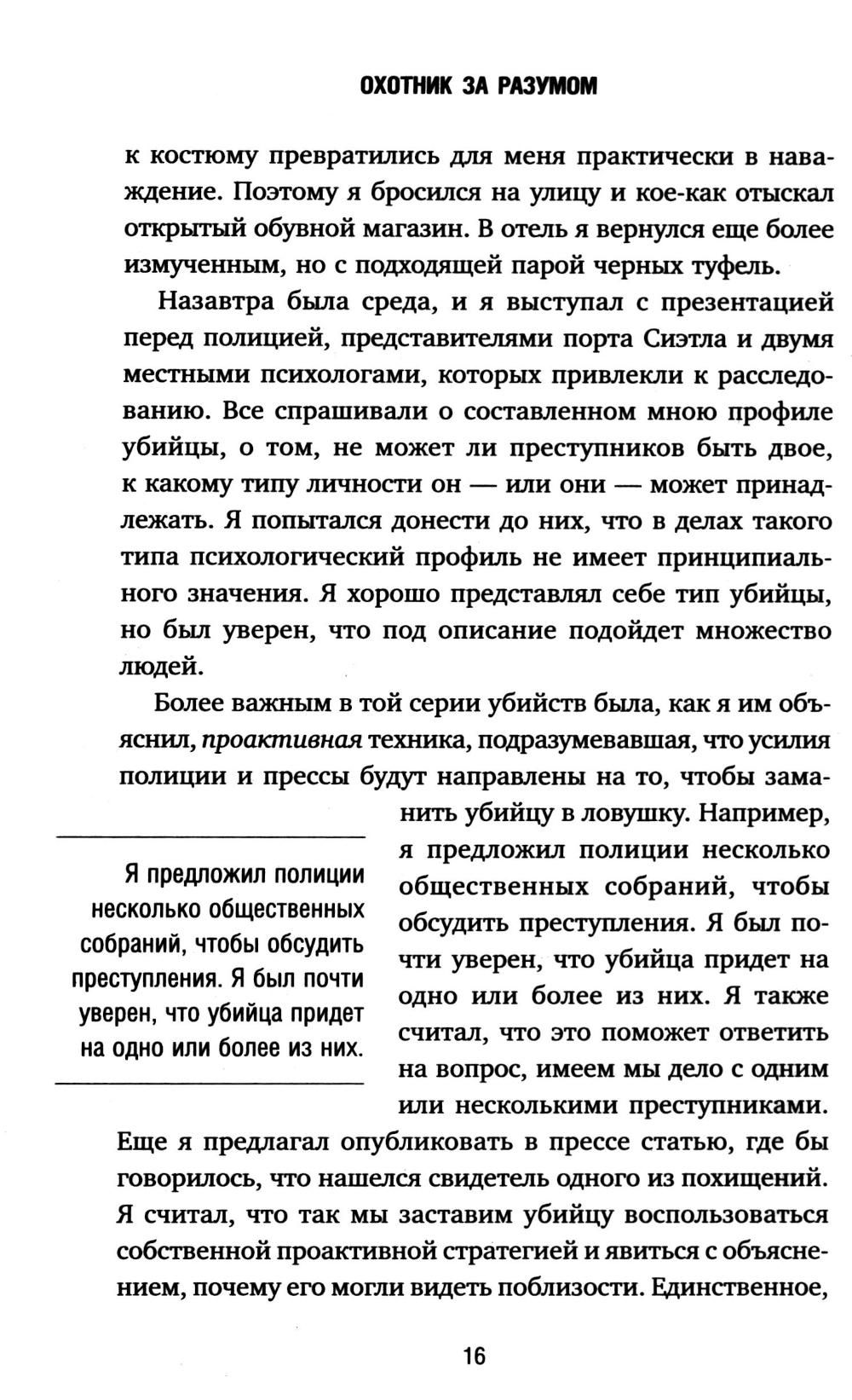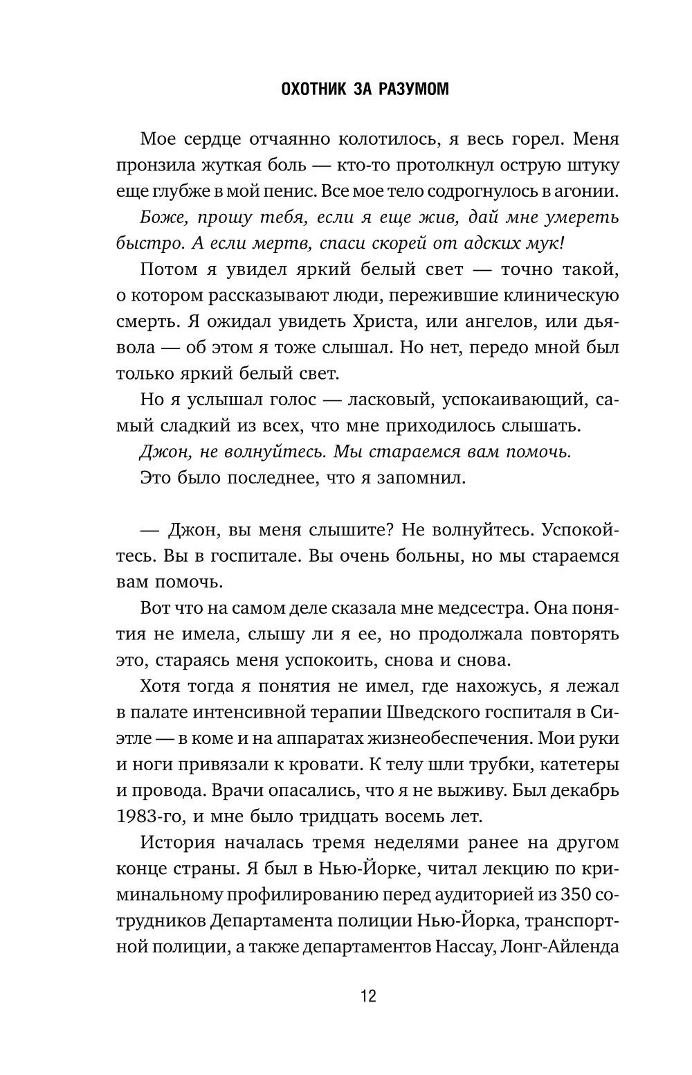 Легендарный профайлер ФБР Джон Дуглас, прототип Джека Кроуфорда из «Молчания ягнят», раскрывает мрачные тайны самых жестоких серийных убийц и преступников. За двадцать пять лет работы в Отделе содействия расследованиям специальный агент Джон Дуглас стал легендой ФБР, первым начав беседовать с серийными убийцами, чтобы понять их мотивы, привычки и слабости, - и тем самым заложив основы криминального профилирования. Он преследовал самых жестоких маньяков своего времени: охотника на проституток в лесах Аляски, убийцу детей в Атланте и Убийцу с Грин-Ривер, дело которого едва не стоило ему жизни. С поразительной детализацией Дуглас рассказывает о расследованиях, анализируя сцены преступлений, воссоздавая действия убийц и жертв, выявляя их привычки и предсказывая следующие шаги. Через интервью с Чарльзом Мэнсоном, Тедом Банди и Дэвидом Кемпером Дуглас демонстрирует, как его новаторский подход позволял вычислять и ловить опаснейших преступников. Захватывающая и пугающая, эта книга раскрывает, как работает разум убийцы - и как его можно перехитрить.| Издательство | Эксмо |