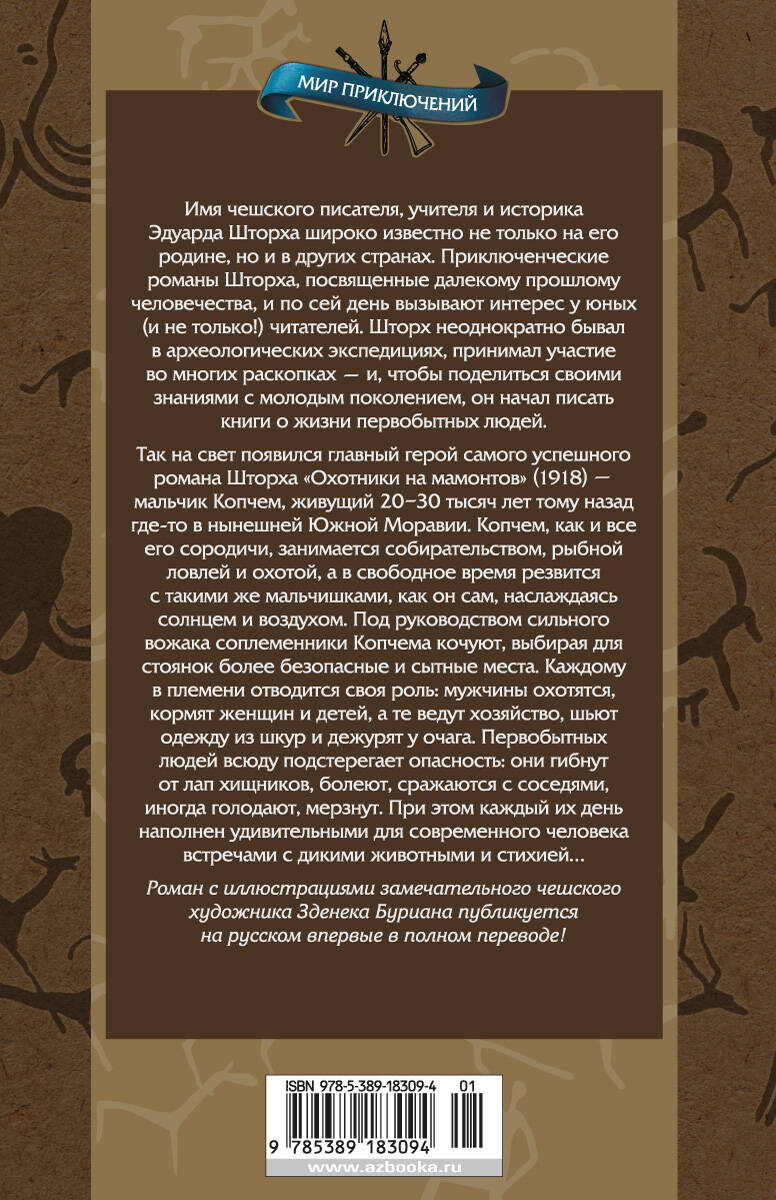 Имя чешского писателя, учителя и историка Эдуарда Шторха широко известно не только на его родине, но и в других странах. Приключенческие романы Шторха, посвященные далекому прошлому человечества, и по сей день вызывают интерес у юных (и не только!) читателей. Шторх неоднократно бывал в археологических экспедициях, принимал участие во многих раскопках - и, чтобы поделиться своими знаниями с молодым поколением, он начал писать книги о жизни первобытных людей. Так на свет появился главный герой самого успешного романа Шторха "Охотники на мамонтов" (1918) - мальчик Копчем, живущий 20-30 тысяч лет тому назад где-то в нынешней Южной Моравии. Копчем, как и все его сородичи, занимается собирательством, рыбной ловлей и охотой, а в свободное время резвится с такими же мальчишками, как он сам, наслаждаясь солнцем и воздухом. Под руководством сильного вожака соплеменники Копчема кочуют, выбирая для стоянок более безопасные и сытные места. Каждому в племени отводится своя роль: мужчины охотятся, кормят женщин и детей, а те ведут хозяйство, шьют одежду из шкур и дежурят у очага. Первобытных людей всюду подстерегает опасность: они гибнут от лап хищников, болеют, сражаются с соседями, иногда голодают, мерзнут. При этом каждый их день наполнен удивительными для современного человека встречами с дикими животными и стихией… Роман с иллюстрациями замечательного чешского художника Зденека Буриана публикуется на русском впервые в полном переводе!| Издательство | Азбука-Аттикус Издат.группа ООО |