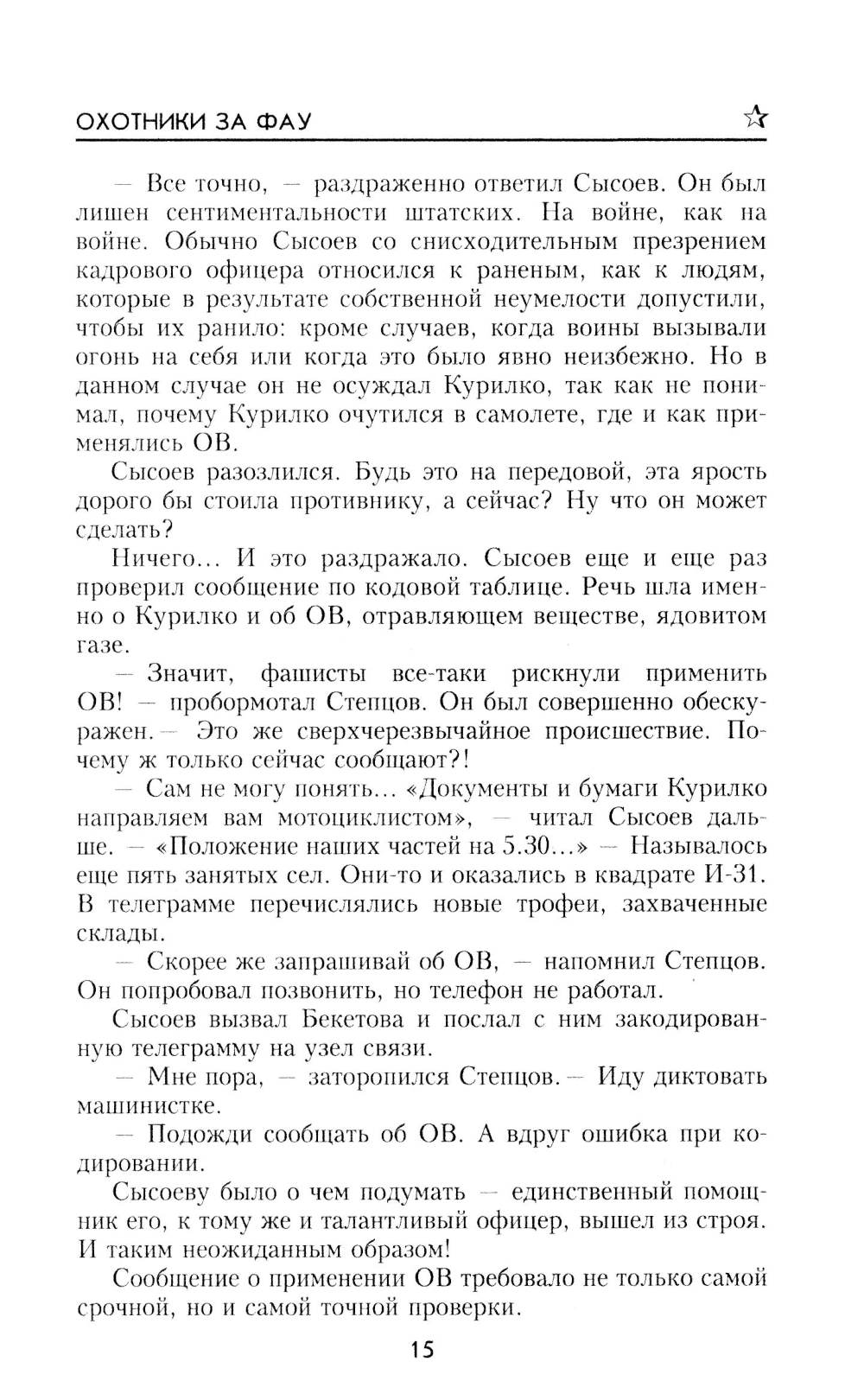 Роман «Охотники за ФАУ» - это увлекательный, живой рассказ о буднях фронтовой разведки. У группы старшего лейтенанта Баженова особенная «специализация»: сбор и проверка оперативной информации обо всех военных новинках противника, будь то новый автоматический карабин, ручной гранатомет или... секретный завод по производству «оружия возмездия».
