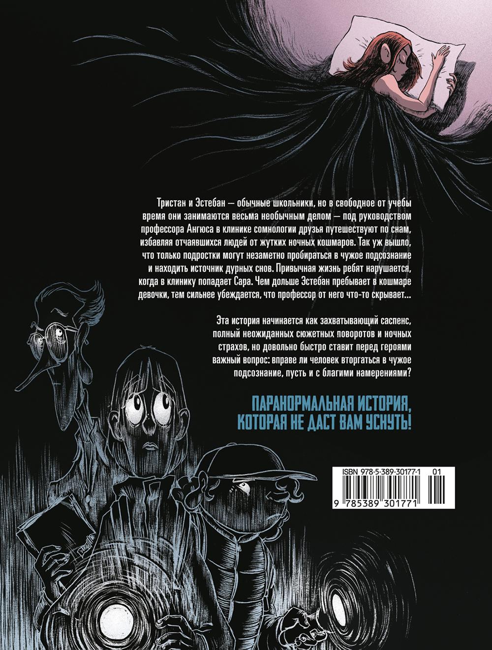 Тристан и Эстебан - обычные школьники, но в свободное от учебы время они занимаются весьма необычным делом - под руководством профессора Ангюса в клинике сомнологии друзья путешествуют по снам, избавляя отчаявшихся людей от жутких ночных кошмаров. Так уж вышло, что только подростки могут незаметно пробираться в чужое подсознание и находить источник дурных снов. Привычная жизнь ребят нарушается, когда в клинику попадает Сара. Чем дольше Эстебан пребывает в кошмаре девочки, тем сильнее убеждается, что профессор от него что-то скрывает… Эта история начинается как захватывающий саспенс, полный неожиданных сюжетных поворотов и ночных страхов, но довольно быстро ставит перед героями важный вопрос: в праве ли человек вторгаться в чужое подсознание пусть и с благими намерениями?| Издательство | Азбука |