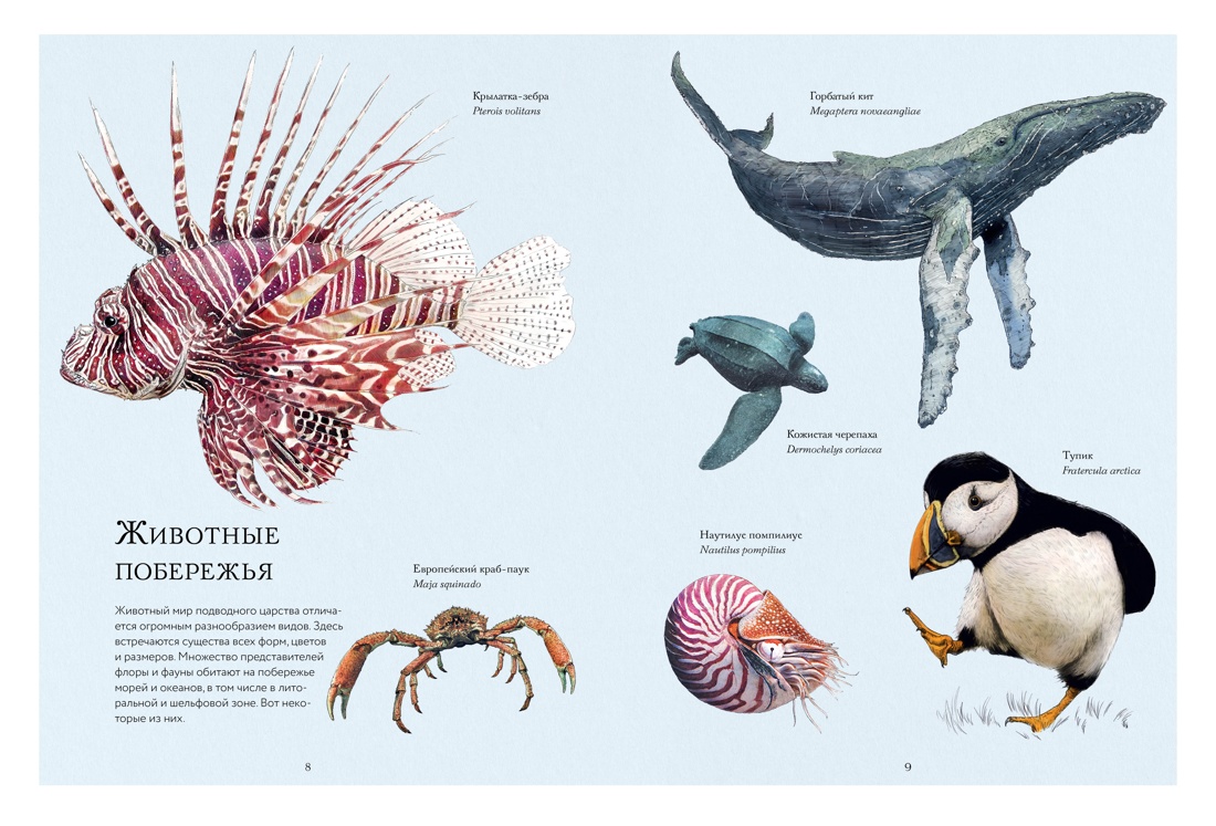 Вода - источник всего живого, именно благодаря ей возможна жизнь на Земле. В морях и океанах нашей планеты обитает множество невероятных созданий. Здесь встречаются не только необычные рыбы, но и ядовитые красочные моллюски, причудливые стрекающие, членистоногие и даже морские змеи. Эта книга расскажет об уникальных способностях и повадках самых ярких представителей морских и прибрежных видов. В ней содержится огромное количество любопытных фактов и чудесных иллюстраций, которые помогут лучше изучить обитателей водной стихии.| Издательство | Махаон |