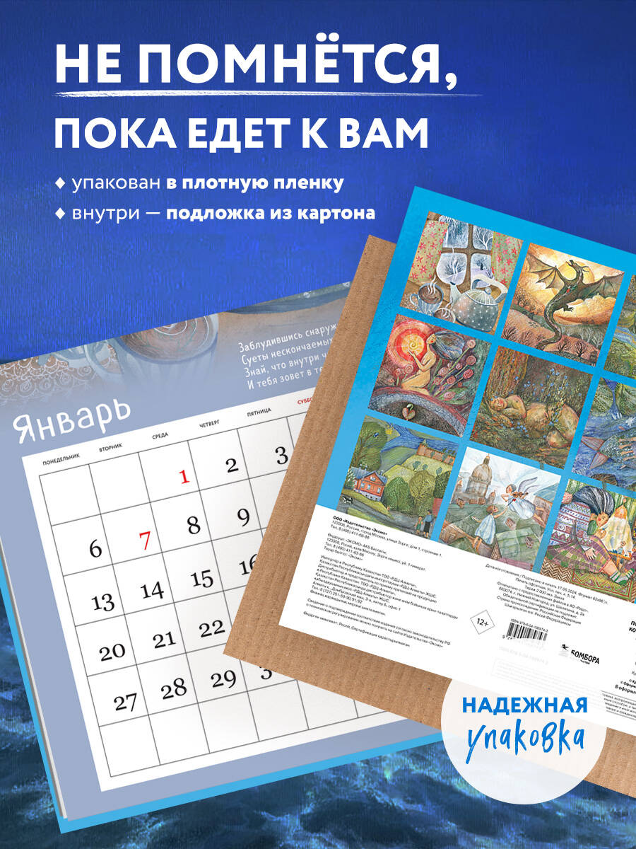 О серии: Наши настенные календари отличаются высоким качеством исполнения! Тщательно подобранные иллюстрации, напечатанные на глянцевой бумаге высочайшего качества, станут настоящим украшением дома, а в календарной сетке найдется место для ваших планов: большие клетки позволят делать записи и организовать свой год! В календаре также отмечены все государственные праздники. В серии настенных календарей издательства «ЭКСМО» каждый найдет тему по вкусу: великие художники, великолепные подборки с самыми знаменитыми произведениями искусства, легендарные кинематографические саги и игры, главные книжные авторы и бестселлеры, фотографии и иллюстрации любимых животных и многое-многое другое! О календаре: Календарь художницы и поэтессы Ольги Кругловой (автора арт-бука «Долюби») дарит не только эстетическое наслаждение, но и развеивает печаль и сомнения даже в самой сложной жизненной ситуации. Каждая картина, каждое стихотворение несут в себе множество смыслов, главный из которых в том, что преграды на нашем пути - это возможность для обретения силы и внутренней опоры. «Долюби себя, докачай, Не стыди и не осуждай, Ненавязчиво, осторожно. Ты. Достойна. Тебе. Можно». Технические параметры: - Тип календаря - настенный перекидной. - Год - 2025. - Календарная сетка - с разбивкой по месяцам. - Вид скрепления - скрепка. - Ширина - 30 см. - Высота - 30 см. - Внутренний блок - мелованная бумага 115 г/м2. - Подложка - плотный гофрокартон для поддержания формы. - Индивидуальная упаковка в плотный целлофановый пакет.| Издательство | ООО "Издательство "Эксмо" |