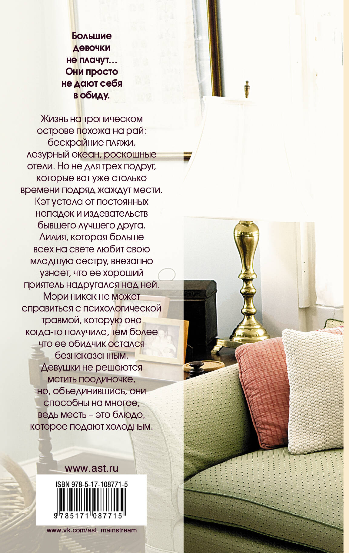 Жизнь на тропическом острове похожа на рай: бескрайние пляжи, лазурный океан, роскошные отели. Но не для трех подруг, которые вот уже столько времени подряд жаждут мести. Кэт устала от постоянных нападок и издевательств бывшего лучшего друга. Лилия, которая больше всех на свете любит свою младшую сестру, внезапно узнает, что ее хороший приятель надругался над ней. Мэри никак не может справиться с психологической травмой, которую она когда-то получила, тем более что ее обидчик остался безнаказанным. Девушки не решаются мстить поодиночке, но, объединившись, они способны на многое, ведь месть - это блюдо, которое подают холодным.| Издательство | ИЗДАТЕЛЬСТВО "АСТ" |