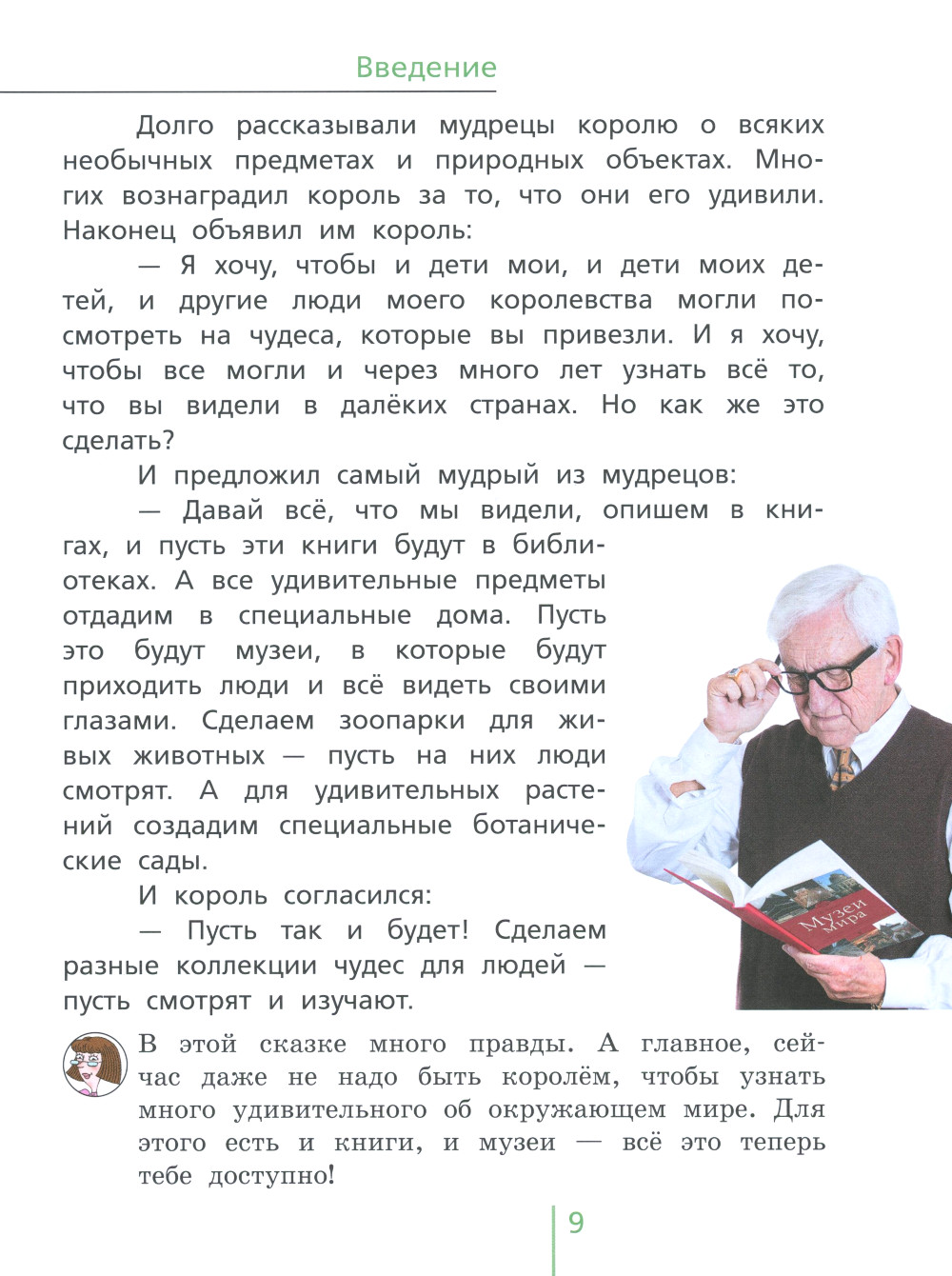 В этом учебнике: 1. Много интересных, занимательных фактов (они удивят ребёнка и сделают учёбу нескучной); 2. Много вопросов на размышление (ответы на них часто неоднозначны, как и в самой жизни); 3. Необычное представление учебных материалов (ребёнок учится анализировать факты, а не просто запоминать их); 4. Системная подача информации (одни учебные темы логически переходят в другие, что развивает системность мышления); 5. Качественные иллюстрации (иллюстрации сделаны с любовью, чтобы поддержать интерес ребёнка и сохранить его зрение).