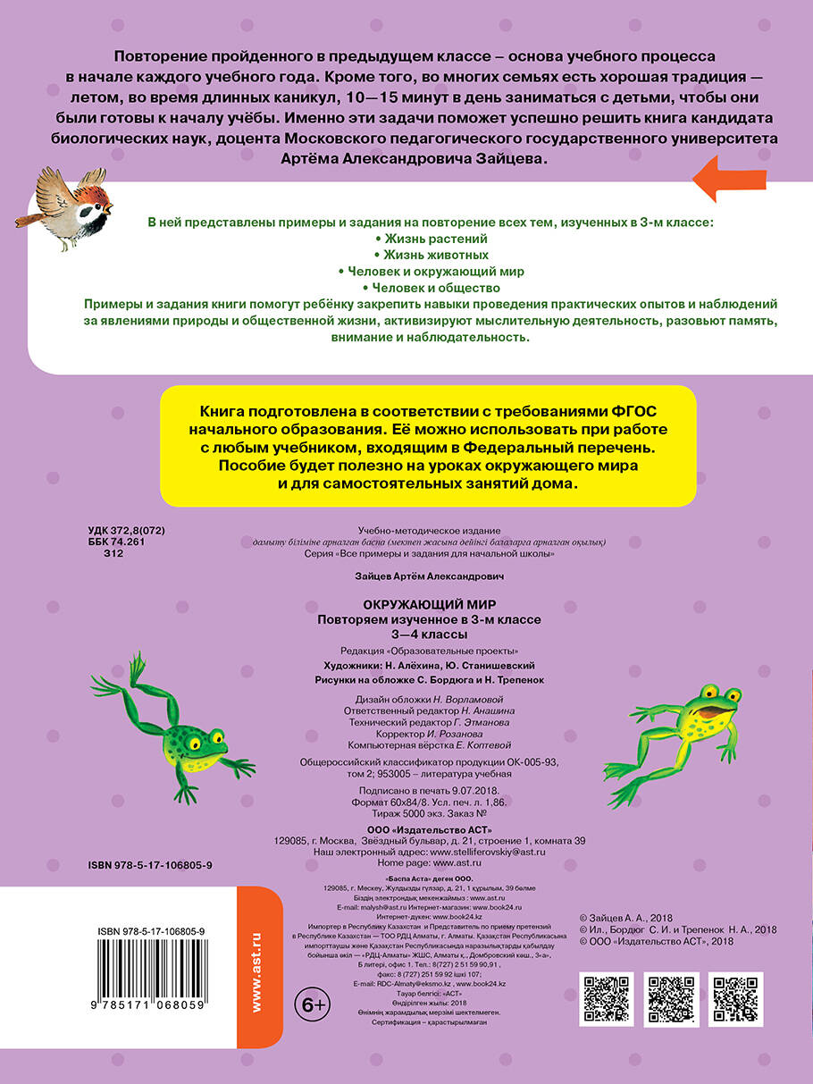 Повторение пройденного в предыдущем классе - основа учебного процесса в начале каждого учебного года. Кроме того, во многих семьях есть хорошая традиция - летом, во время длинных каникул, 10-15 минут в день заниматься с детьми, чтобы они были готовы к началу учёбы. Именно эти задачи поможет успешно решить книга кандидата биологических наук, доцент Московского Педагогического Государственного Университета Артёма Александровича Зайцева. В ней представлены примеры и задания на повторение всех тем, изученных в 3 классе: Жизнь растений, Жизнь животных, Человек и окружающий мир, Человек и общество Примеры и задания книги помогут ребёнку закрепить навыки проведения практических опытов и наблюдений за явлениями природы и общественной жизни, активизируют мыслительную деятельность, разовьют память, внимание и наблюдательность. Пособие подготовлено в соответствии с требованиями ФГОС начального образования. Его можно использовать при работе с любым учебником, входящим в Федеральный перечень. Книга будет полезна на уроках окружающего мира и для самостоятельных занятий дома.| Издательство | ИЗДАТЕЛЬСТВО "АСТ" |