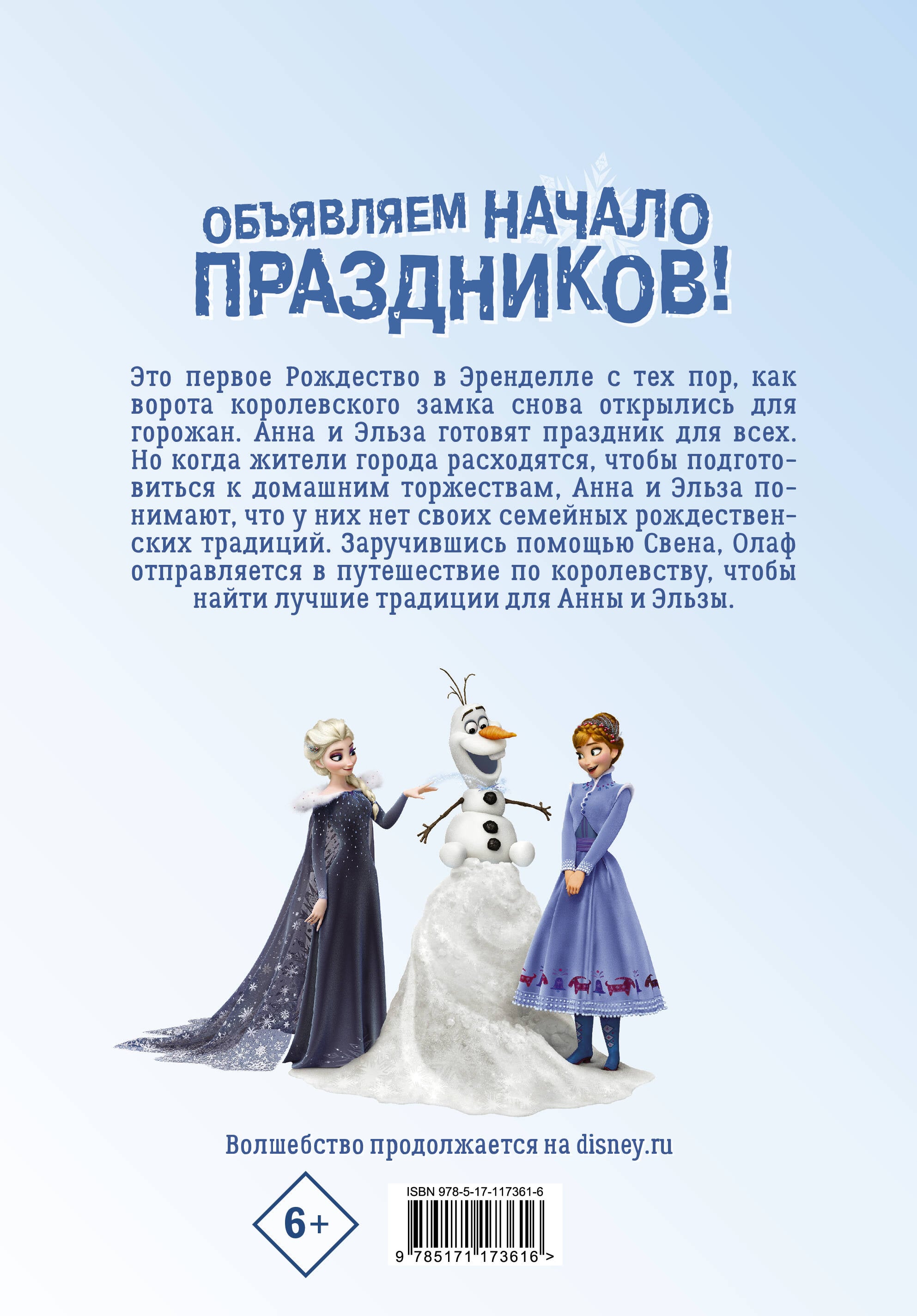Это первое Рождество в Эренделле с тех пор, как ворота королевского замка снова открылись для горожан. Анна и Эльза готовят праздник для всех. Но когда жители города расходятся, чтобы подготовиться к домашним торжествам, Анна и Эльза понимают, что у них нет своих семейных Рождественских традиций. Заручившись помощью Свена, Олаф отправляется в путешествие по королевству, чтобы найти лучшие традиции для Анны и Эльзы.| Издательство | Издательство "АСТ" |