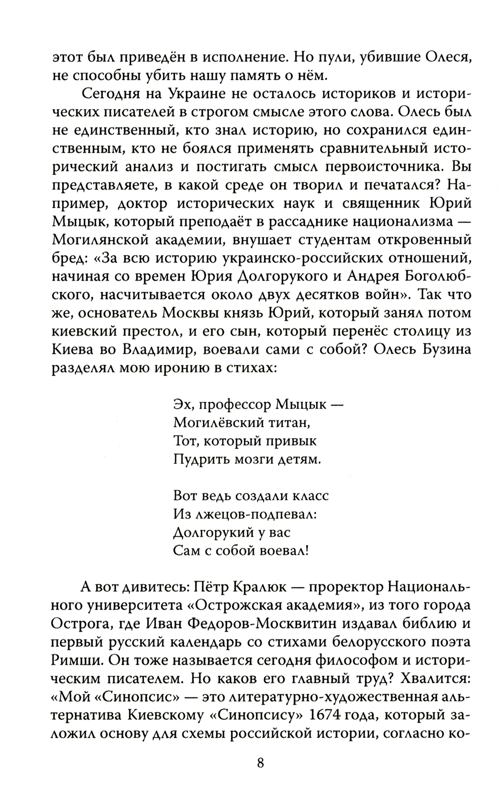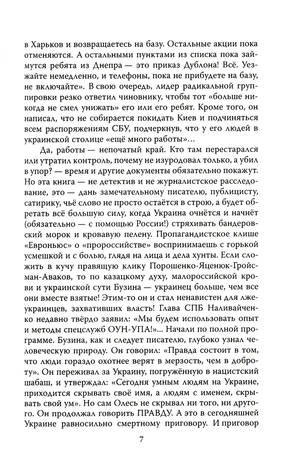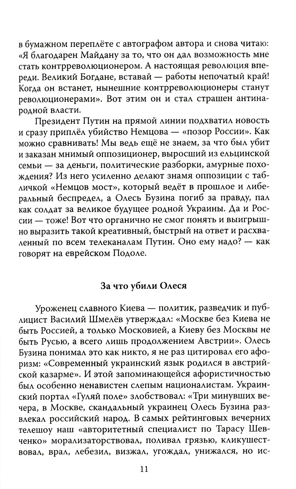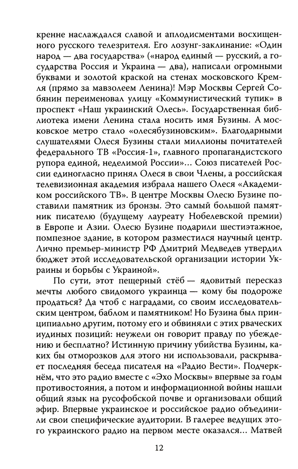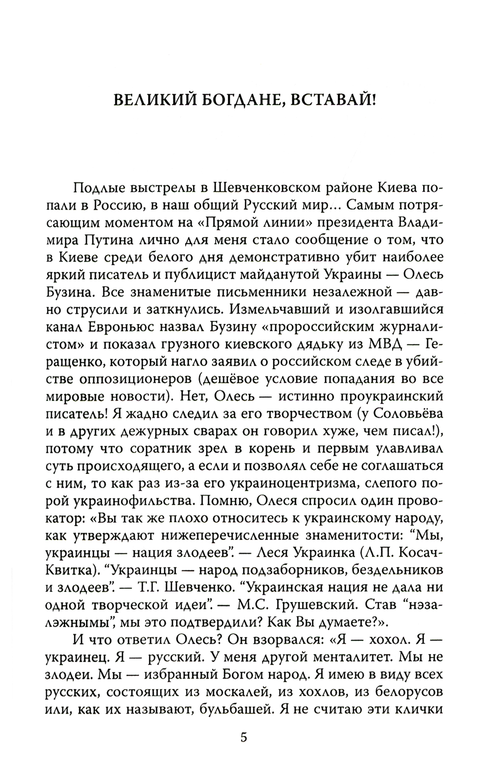 Сон разума рождает чудовищ. Украинский проект был кабинетной игрой интеллектуалов, модной игрушкой, за которой не было никакой социальной базы. Никакой Украины не было на землях Малороссии. Но трагические повороты нашей истории привели к тому, что сон благодушных метателей стал страшной явью, которая утопила юго-западные земли Российской империи в крови. Украинский публицист Олесь Бузина всю жизнь развенчивал ложь об «Украине» Он написал множество книг о подлинной истории Малороссии, в которых разоблачал те многочисленные мифы, которые за какие-то сто лет наворотили кровавые мифотворцы. За это его и убили. Смерть Олеся Бузины не стала смертью его идей и взглядов, которые нельзя убить. Убийцы не заставили замолчать слово правды. Эта книга и расскажет о чем предупреждал Бузина и что он предвидел.