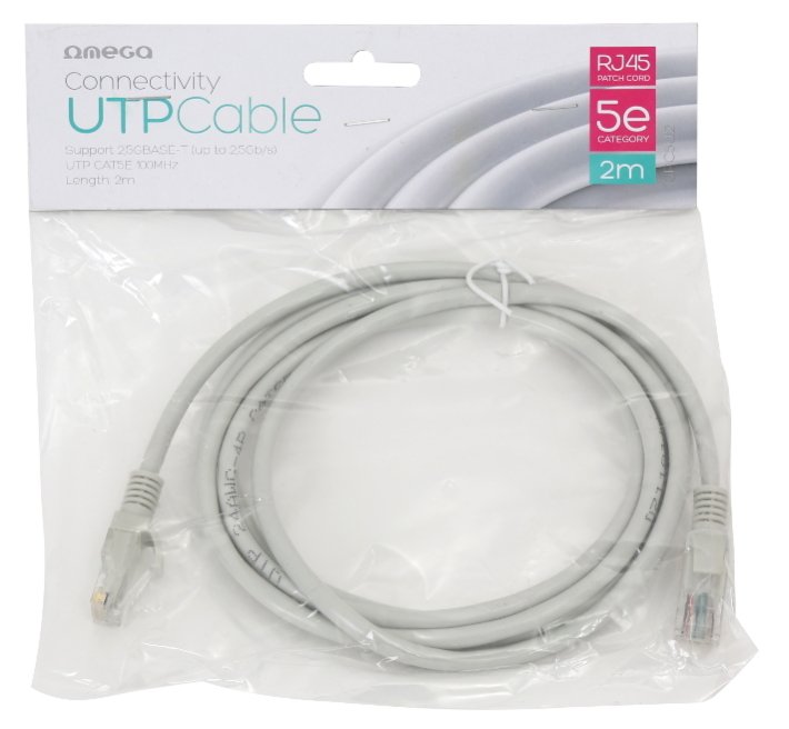 Omega LAN Кабель / 5e cat / RJ45 / 2m / Серый