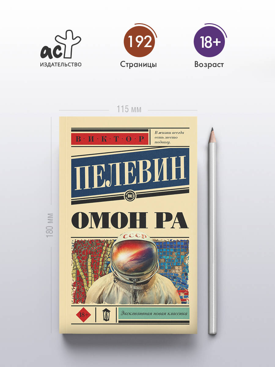 "Омон Ра" рисует курьезный мир жестокой действительности, где человеческая жизнь напоминает наглухо замурованную ракету с нарисованной дверью, а полеты на Луну оказываются самым грандиозным обманом в истории СССР. С неподражаемым изяществом Виктор Пелевин предлагает альтернативную версию событий, которые никем до этого не ставились под сомнение.| Издательство | ИЗДАТЕЛЬСТВО "АСТ" |