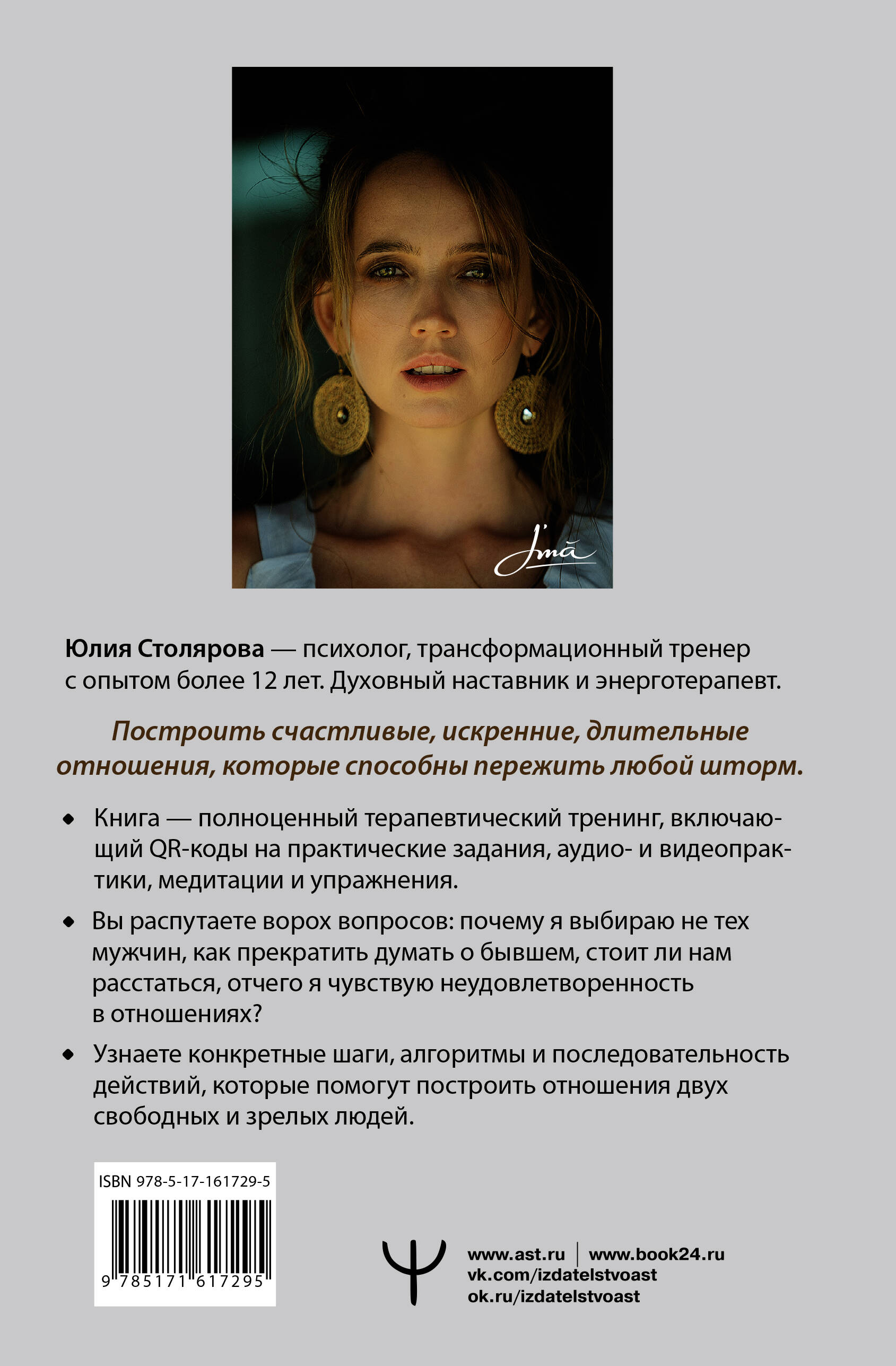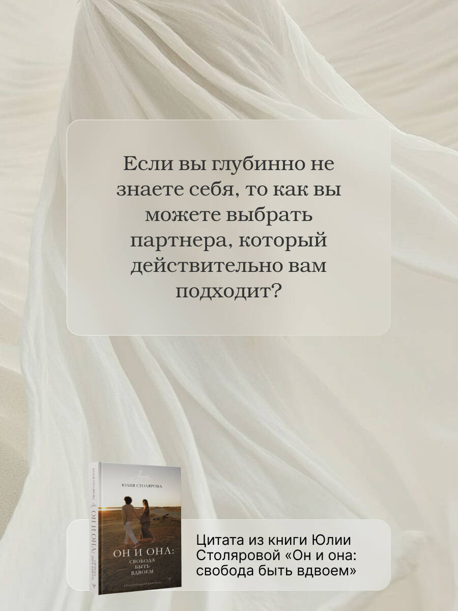 Что такое любовь? Страсть, лёгкость, когда перехватывает дыхание и появляются бабочки в животе. Когда человек становится всем миром, а всё остальное престаёт иметь значение. А что если любовь - это совсем другое? Эта книга - ваш ориентир в поиске осознанной любви, в которой нет места американским горкам из полярных эмоций - от эйфории до упадка, от открыленности до бездны отчаяния. Зато есть место доверию, уважению и подлинной близости. Вы узнаете: - как в современном мире меняются ориентиры в отношениях и в браке; - как в эпоху искусственности полюбить свое природное «я» и позаботиться о нем; - как забыть того самого бывшего и сказать «нет» старым сценариям; - как впустить в свою жизнь нового мужчину и построить с ним крепкий союз; - как избавиться от чувства неудовлетворённости в нынешних отношениях. Остаться или уйти? Это уютное, глубокое и мудрое рассуждение о природе любви, а также полноценный тренинг - внутри вы найдете алгоритмы, задания и QR-коды на практики, которые помогут вам открыть любовь К СЕБЕ и В СЕБЕ.| Издательство | Издательство "АСТ" |