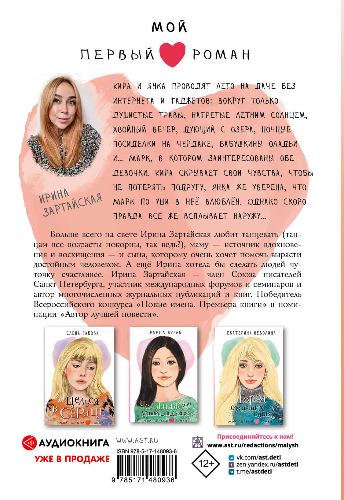 Кира и Янка проводят лето на даче без интернета и гаджетов: вокруг только душистые травы, нагретые летним солнцем, хвойный ветер, дующий с озера, ночные посиделки на чердаке, бабушкины оладьи и… Марк, в котором заинтересованы обе девочки. Кира скрывает свои чувства, чтобы не потерять подругу, Янка же уверена, что Марк по уши в неё влюблён. Однако скоро правда всё же всплывает наружу… Ирина Зартайская стала детским писателем, потому что однажды ей сказали: «Тебе надо писать для детей». А Ирина вообще-то очень послушная. Больше всего на свете она любит танцевать (танцам все возрасты покорны, так ведь?), маму, - источник вдохновения и восхищения, и сына, которому очень хочет помочь вырасти достойным человеком. А ещё Ирина хотела бы сделать людей чуточку счастливее. Говорят, нужно начинать с себя, но времени всё как-то не хватает… Ирина Зартайская - член Союза писателей Санкт-Петербурга, участник международных форумов и семинаров и автор многочисленных журнальных публикаций и книг. Победитель Всероссийского конкурса «Новые имена. Премьера книги» в номинации «Автор лучшей повести».| Издательство | Издательство "АСТ" |